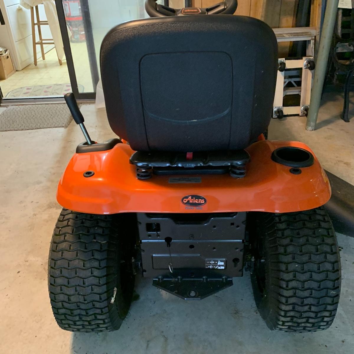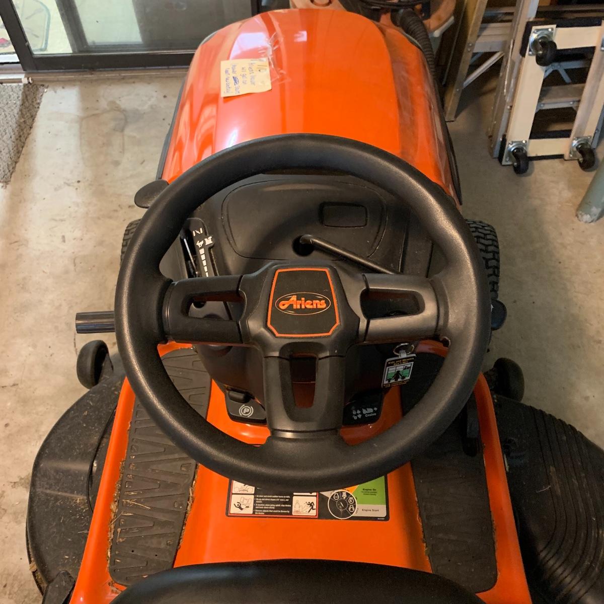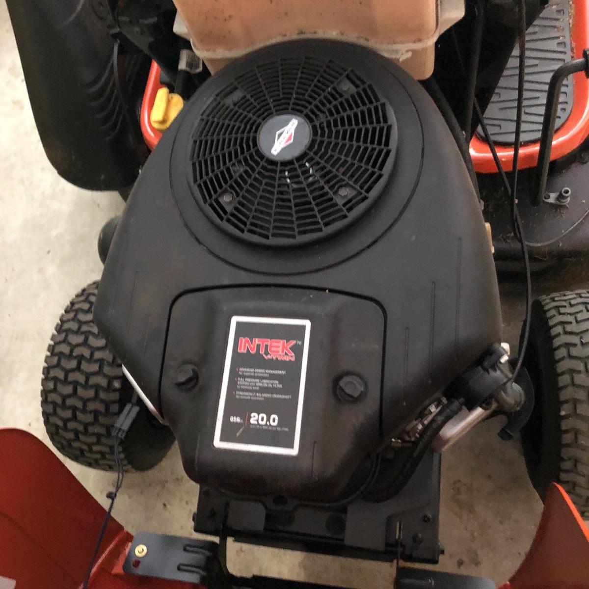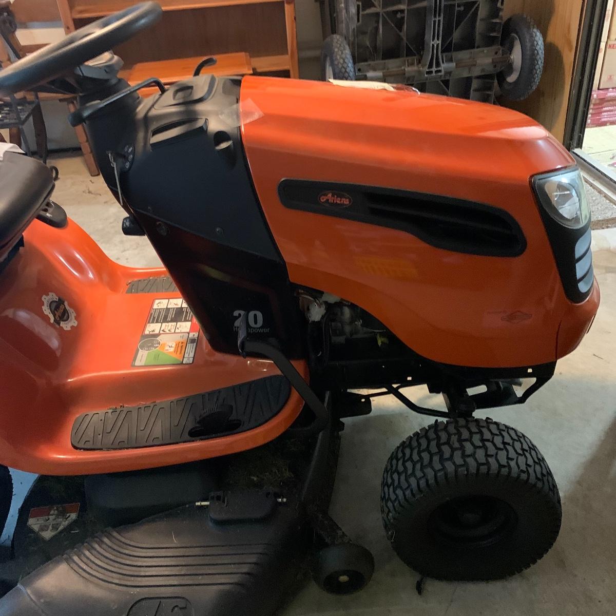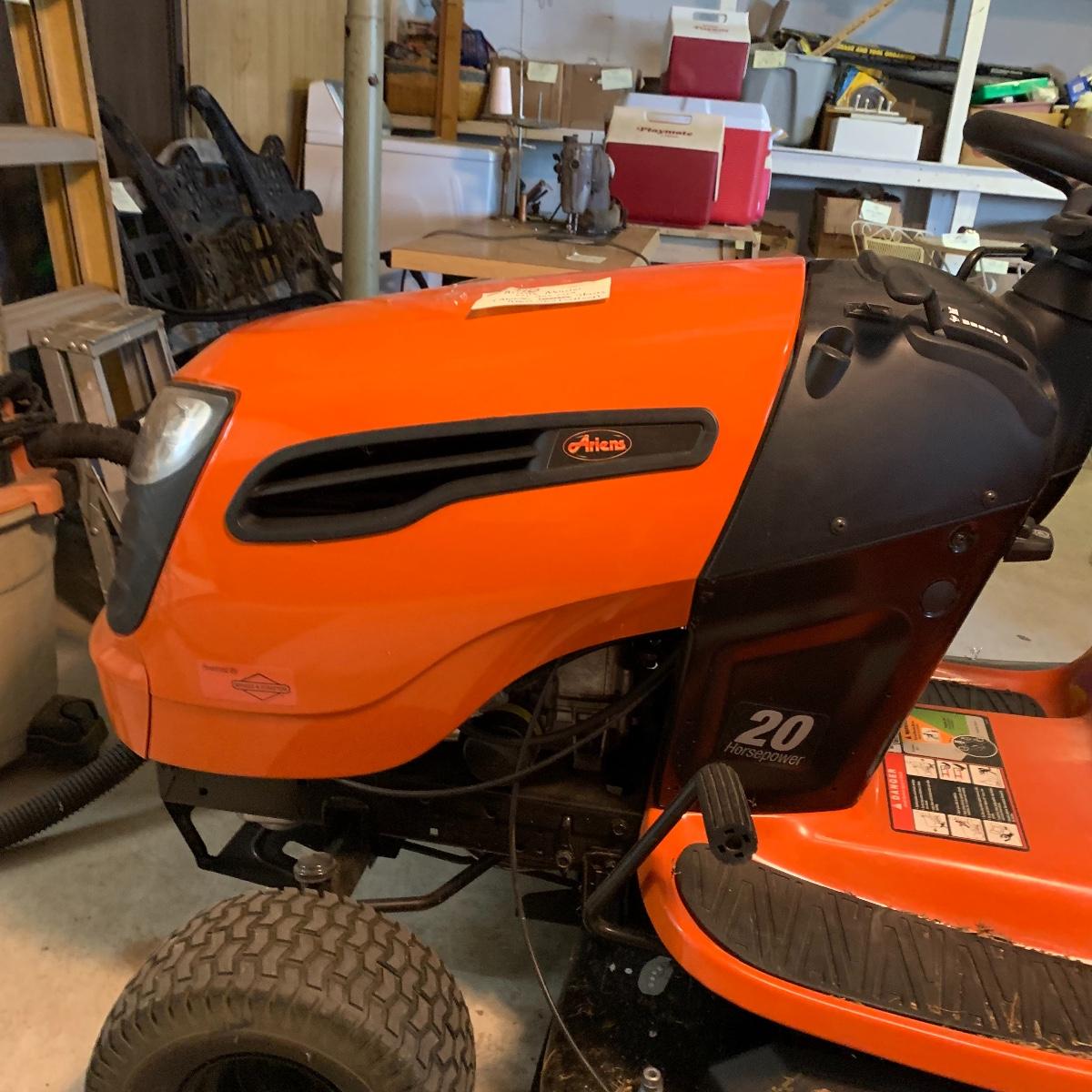 This 20 HP automatic lawn mower has a 46” cut and is super clean and been well cared for. It appears to have been sitting unused for a long time and the original battery is dead. We did jumpstart it and it cranked up quickly. See images for more information. Manual and paperwork comes with it.