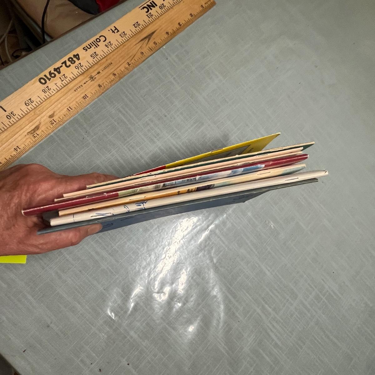 8. Sizes are approximate, you can estimate as our lot number signs are 3.5" long. Also we use an 18" & 36" measuring stick.  We try on certain things to do actual measurements. No guarantees on actual sizes, we try our best!