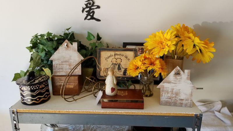 Misc lot - faux flowers, coasters and holder, and more