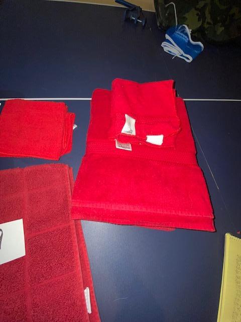Lot 579 - Red bath towels