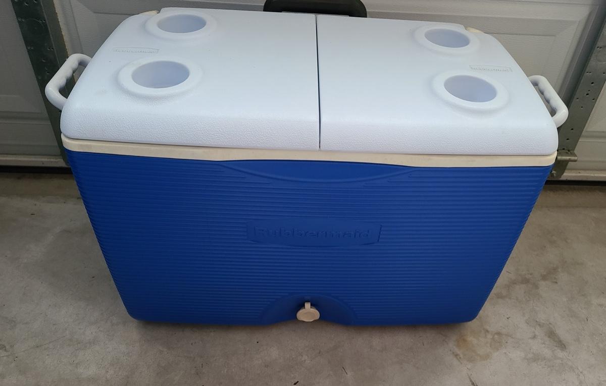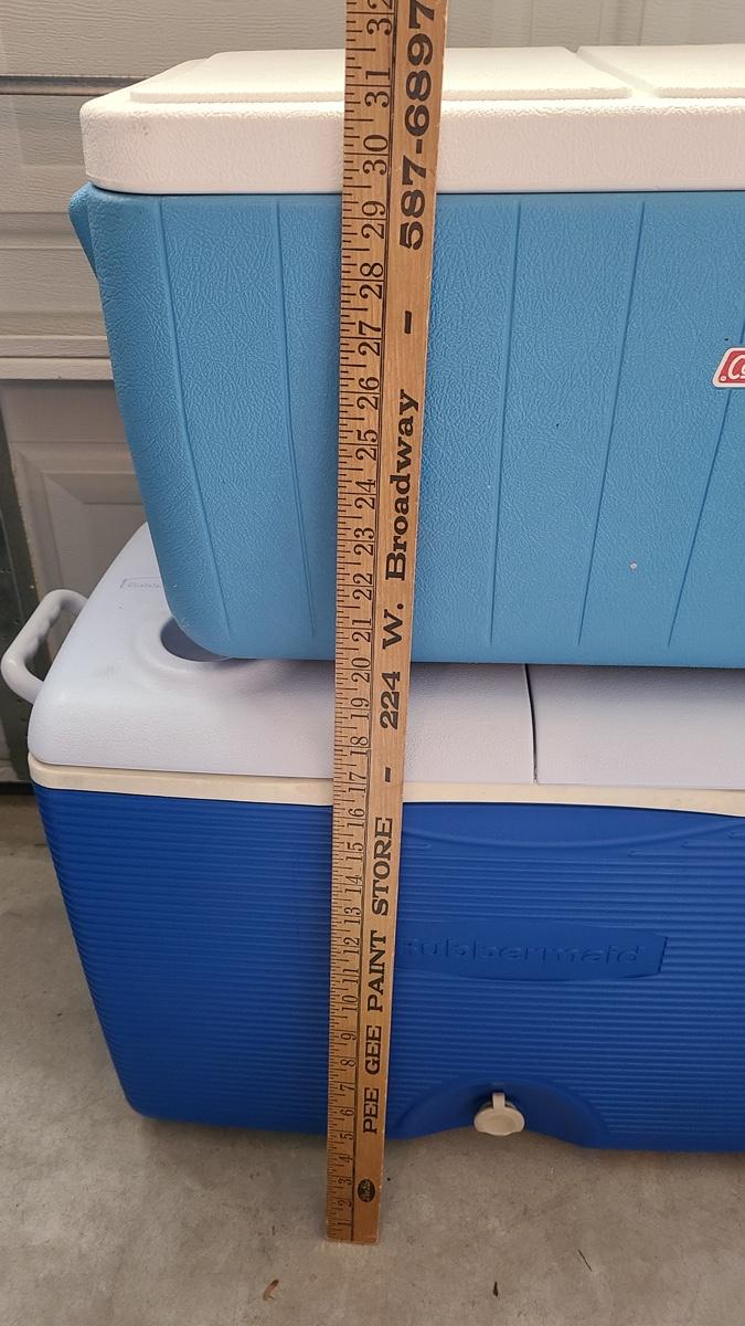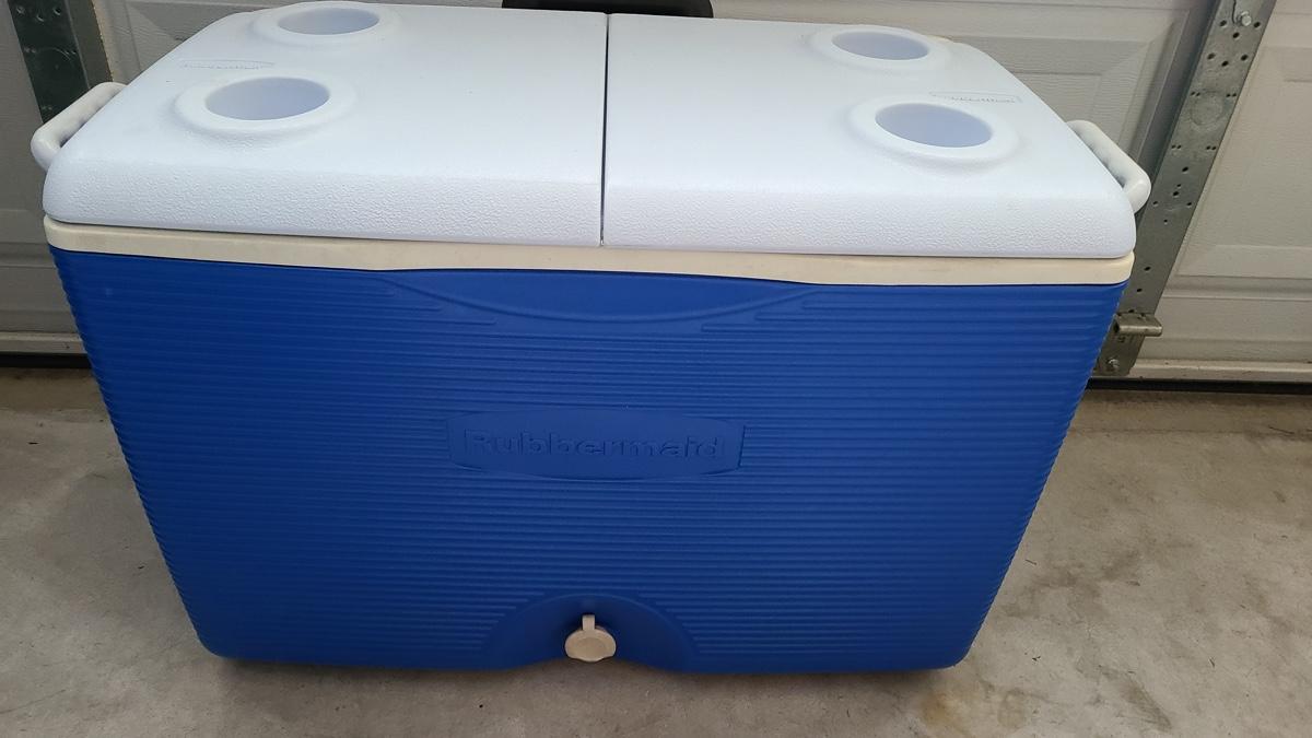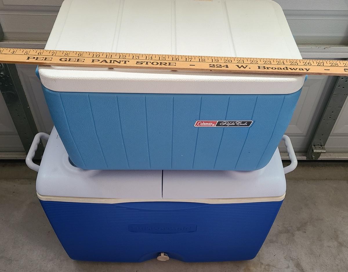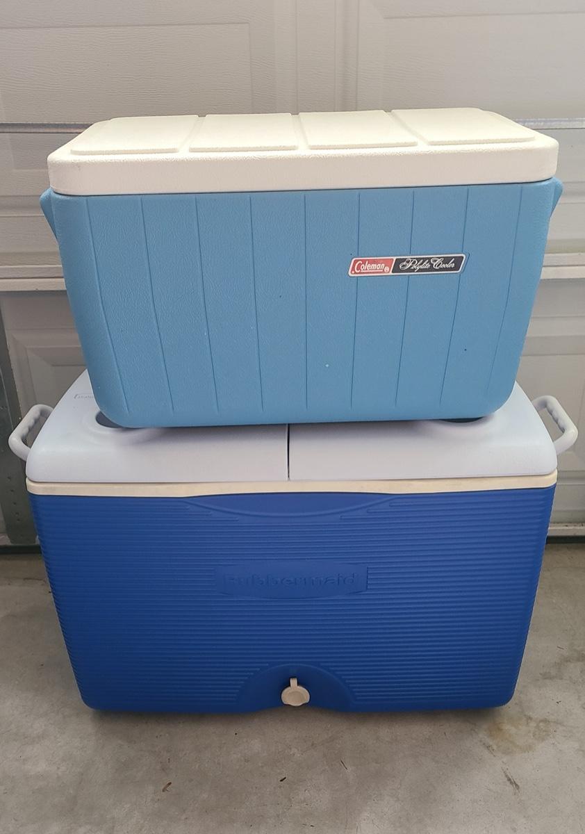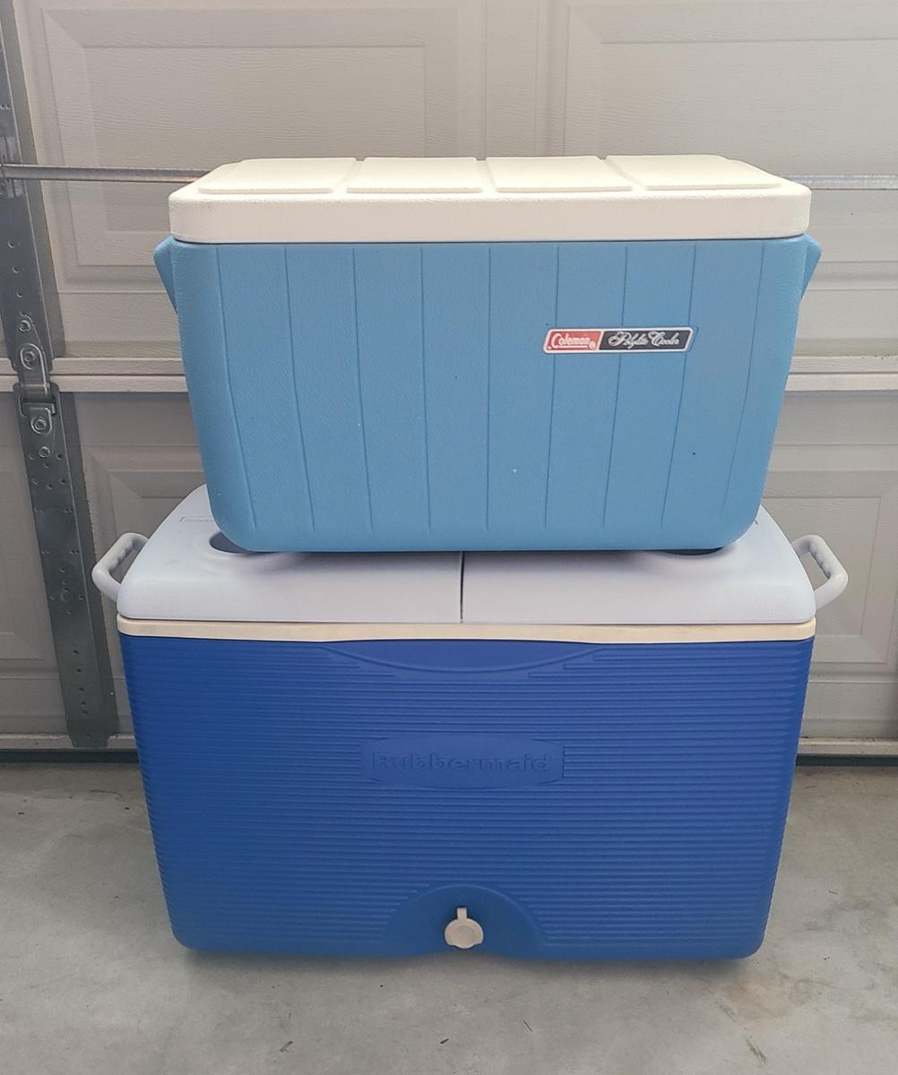 Two nice clean coolers ready for summer! Large blue one has a handle! Please see all pictures for content of the lot, condition of the lot, and measurements if taken. Pictures are the best representation of the items listed and items are untested unless indicated in description. Thank you for looking and have fun bidding!
