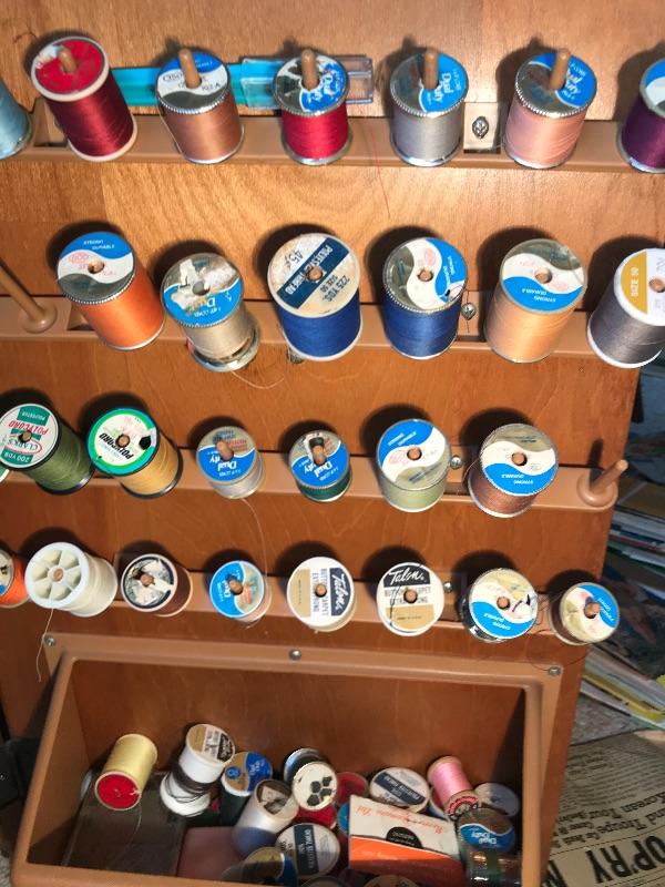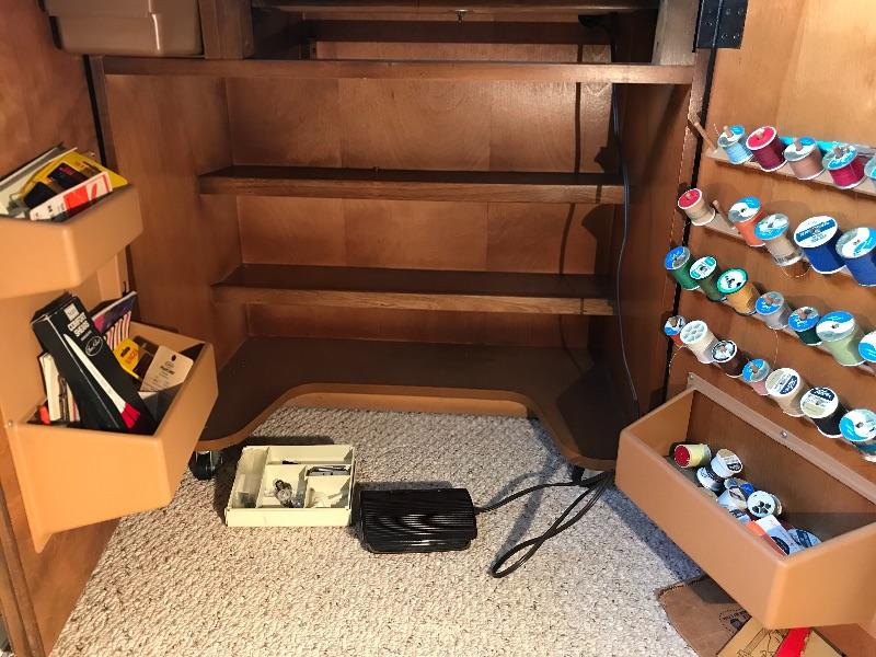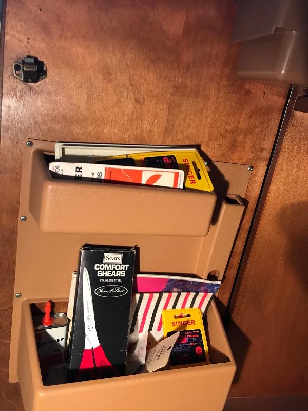 Lot 57d: Singer Sewing Machine & Cabinet with supplies