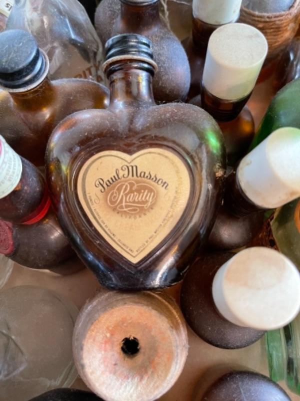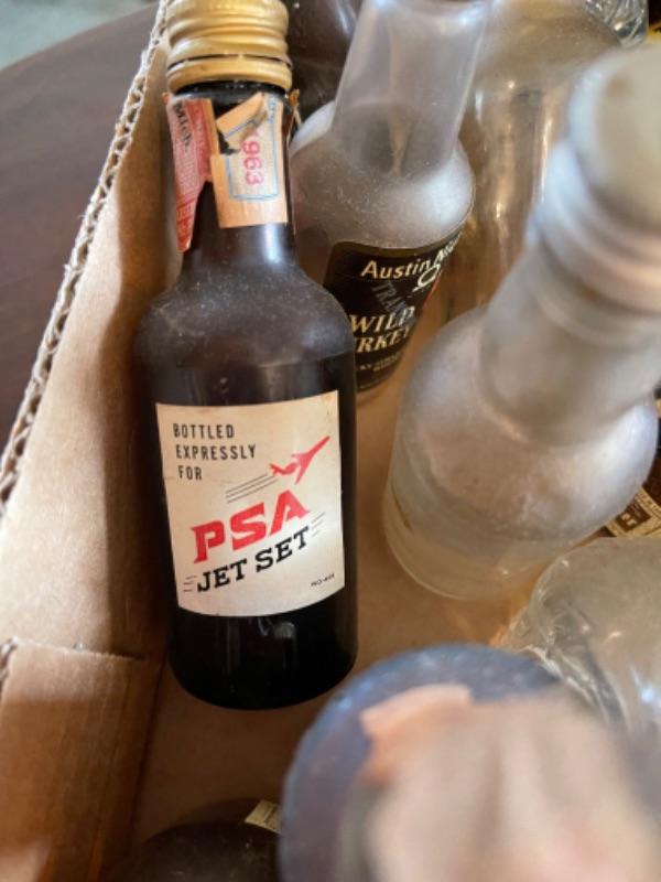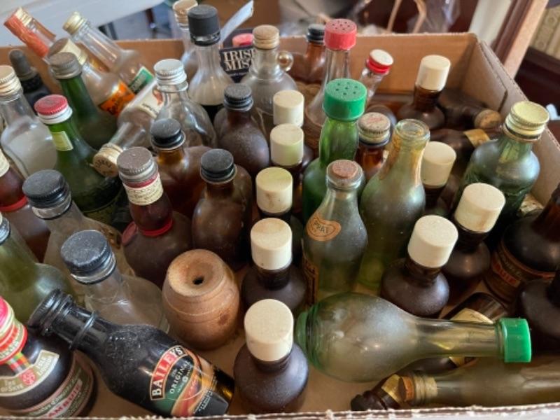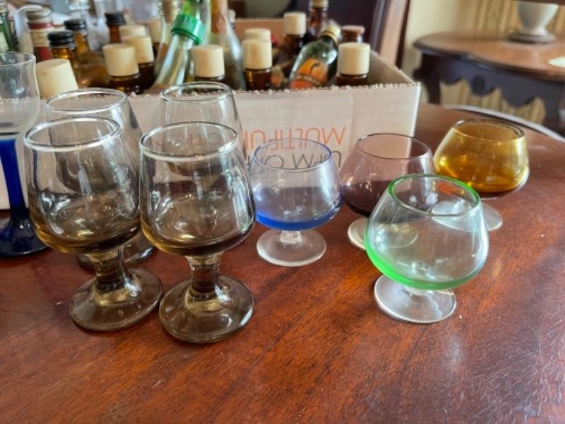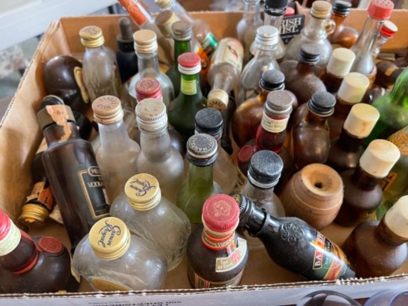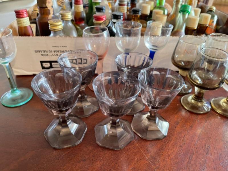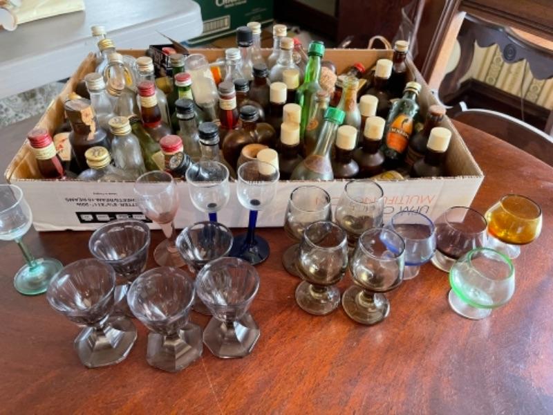 Lot 57DR. Large collection of empty miniature liquor bottles and collection of colored liquor glasses--$50