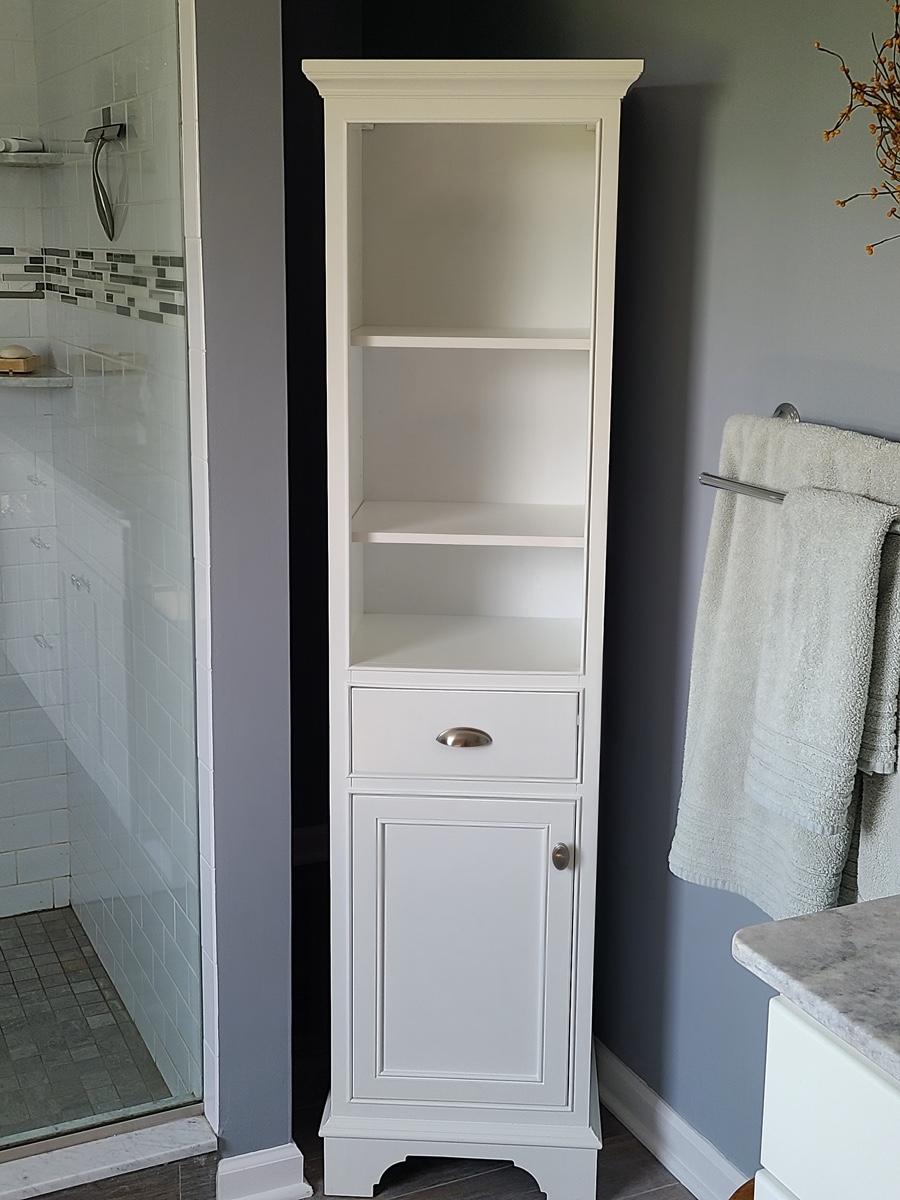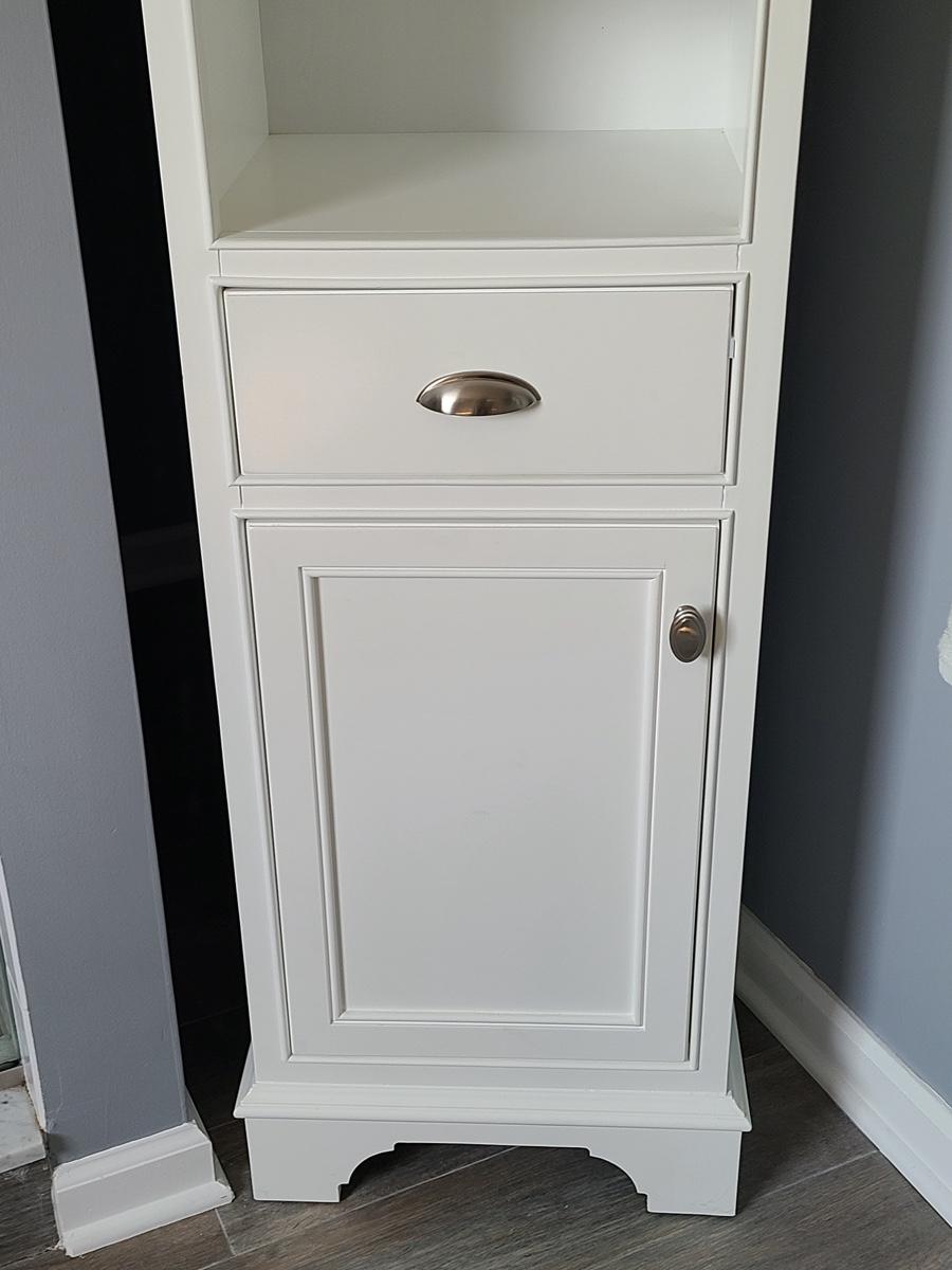 This is the best kind of piece! Stylish and functional. Perfect for bathroom, kids room, pantry etc! Measures 67 inches tall. Located on the second floor. You will need to bring down yourself. Please see all pictures as they are the best representation of the items in the lot, the condition of the lot, and will show measurements if taken. If purchasing furniture you must be able to move yourself with your own help, and truck. .