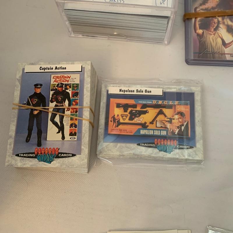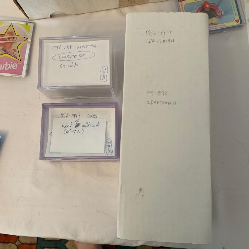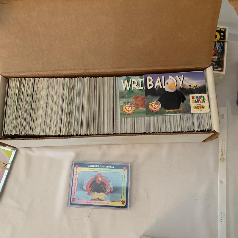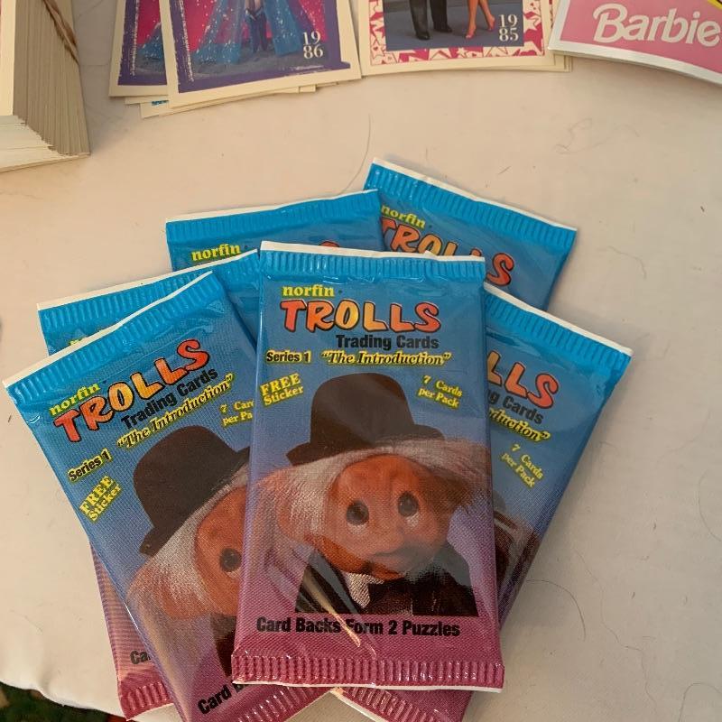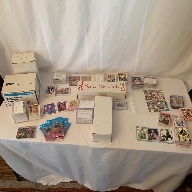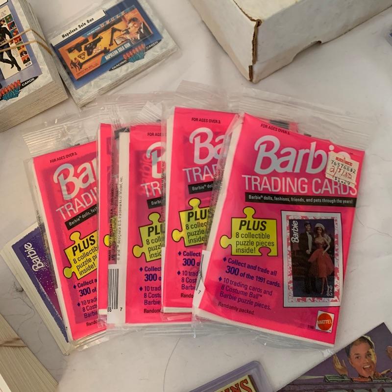 This large selection of mostly Barbie collector cards and oversized collector cards with puzzles also has fun collector cards of our favorite collectibles like Beanie Babies, Mad Magazine, Norman Rockwell, Precious Moments, Classic Toys and Craftsman. Numerous sets though unverified there are also 6 packs of Trolls cards that are unopened. Small selection of Lionel Trains and One set of Bible Cards (unverified).