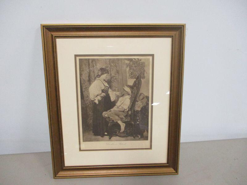 Please see pictures for condition frame does have some damage and picture may need cleaning - foxing - Size approx 16 1/2 x 19 1/2
