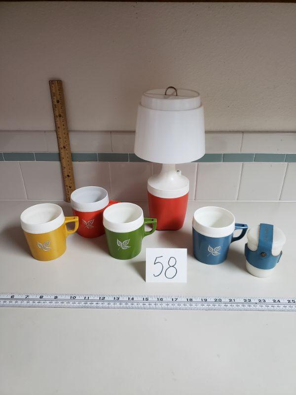Lot 58: Mid Century Modern Mugs, Travel Tumblers and Lantern