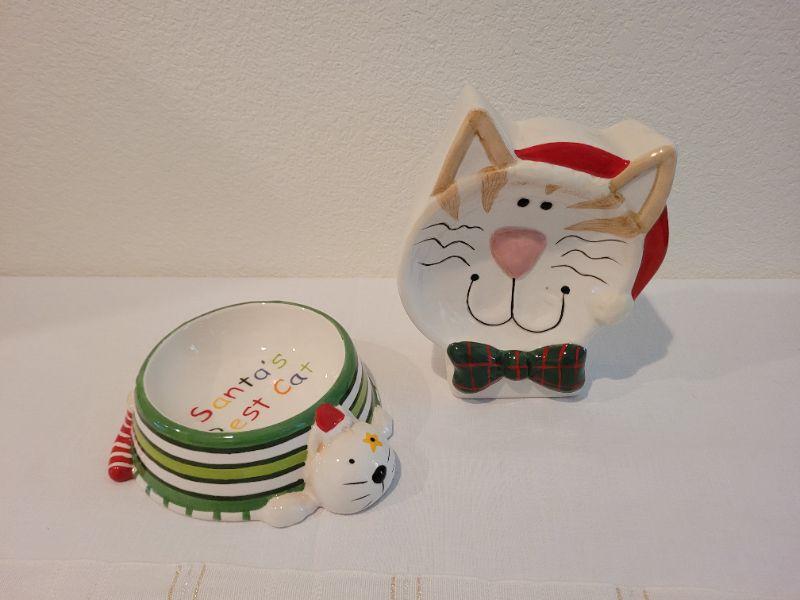 Lot 59: (2) New CHRISTMAS Theme CAT Food/Water Bowls