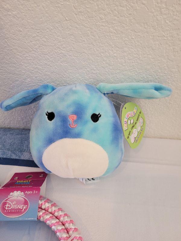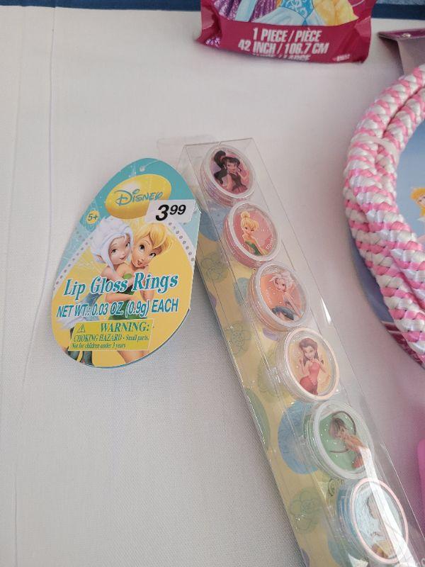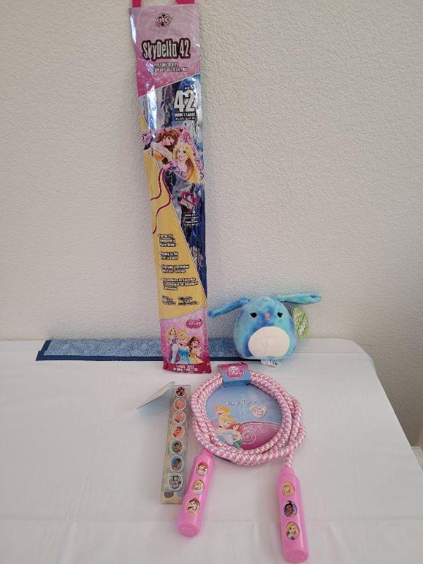 Lot 58: New Disney Princess Kite, Lip Gloss Rings, Jump Rope and Small Plush Bunny