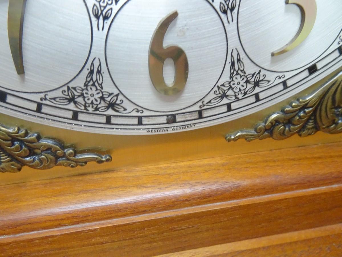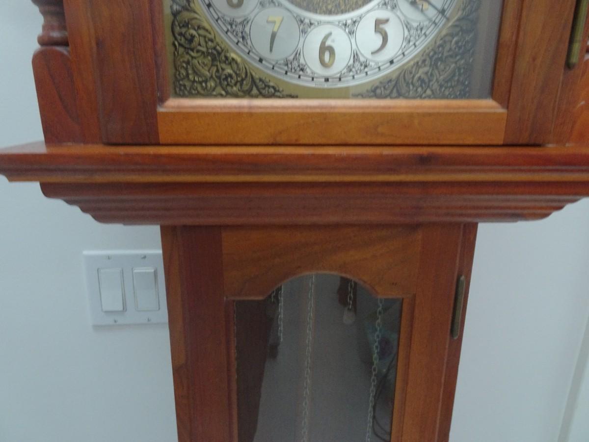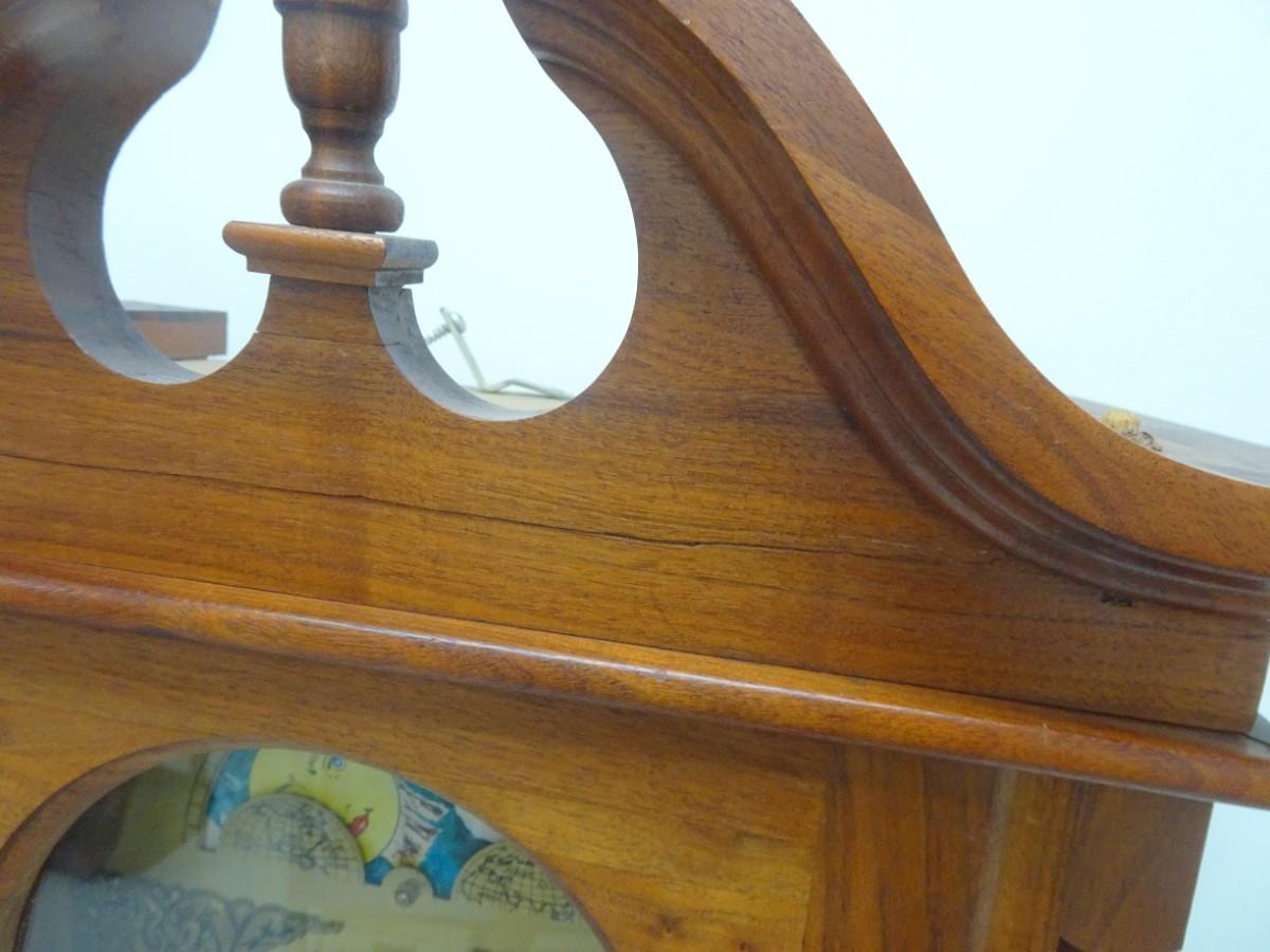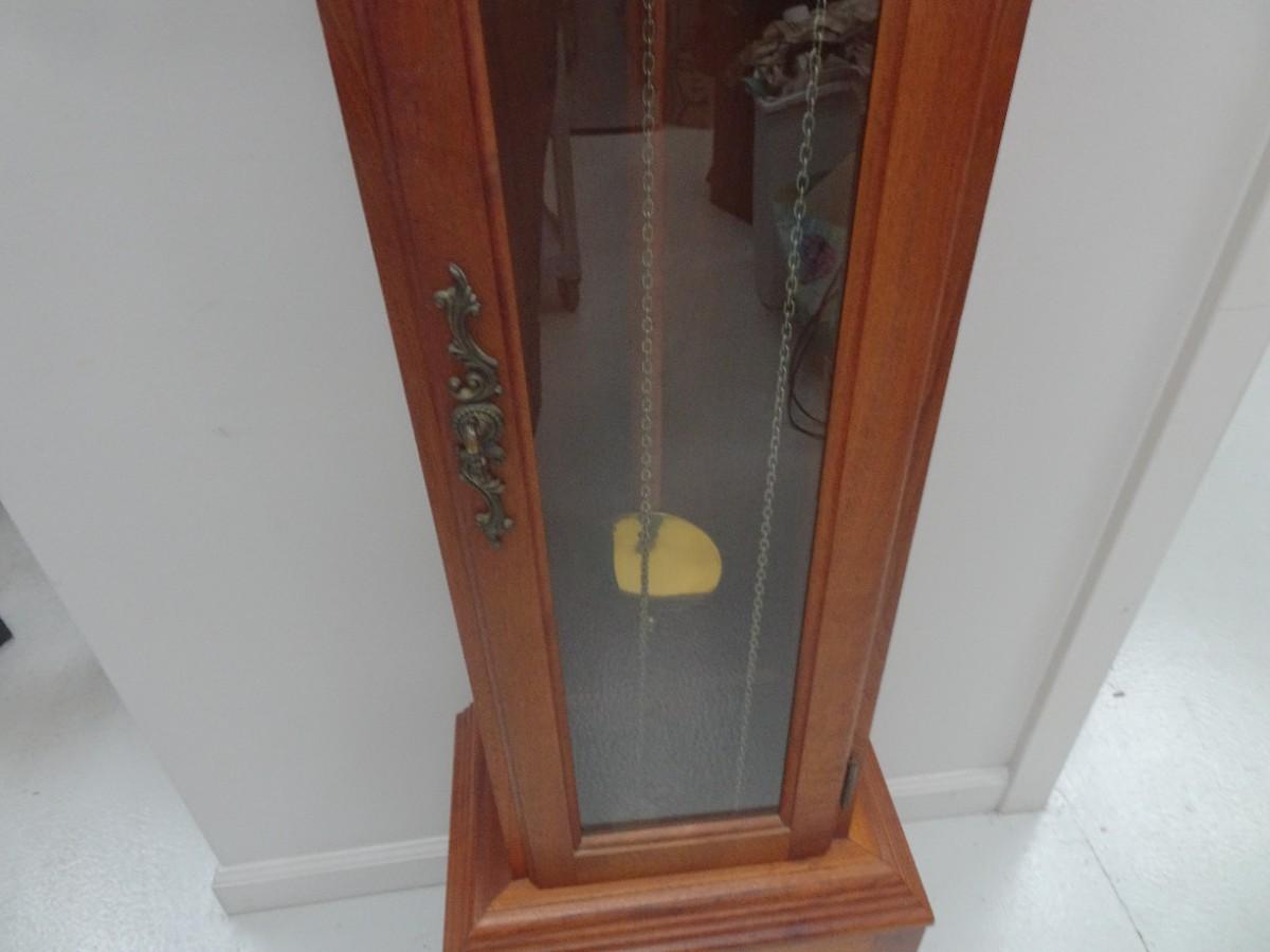 LOT 58. THIS CLOCK HAS NOT BEEN TESTED AND HAS DAMAGE/REPAIR AT TOP OF WOOD PLEASE SEE PICS