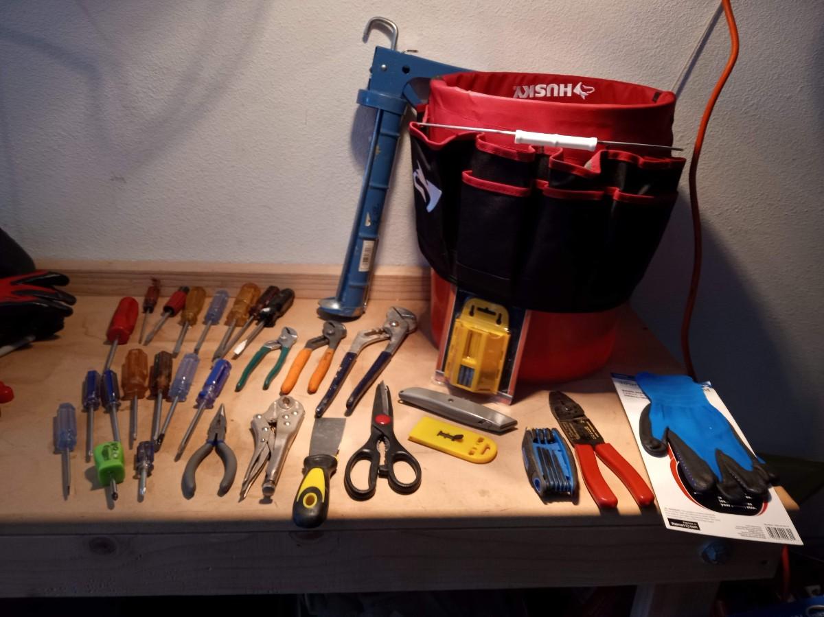 HUSKY TOOL BUCKET WITH A VARIETY OF HAND TOOLS