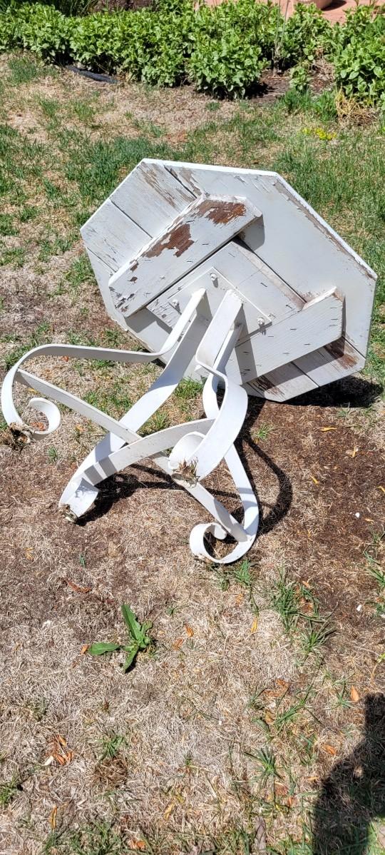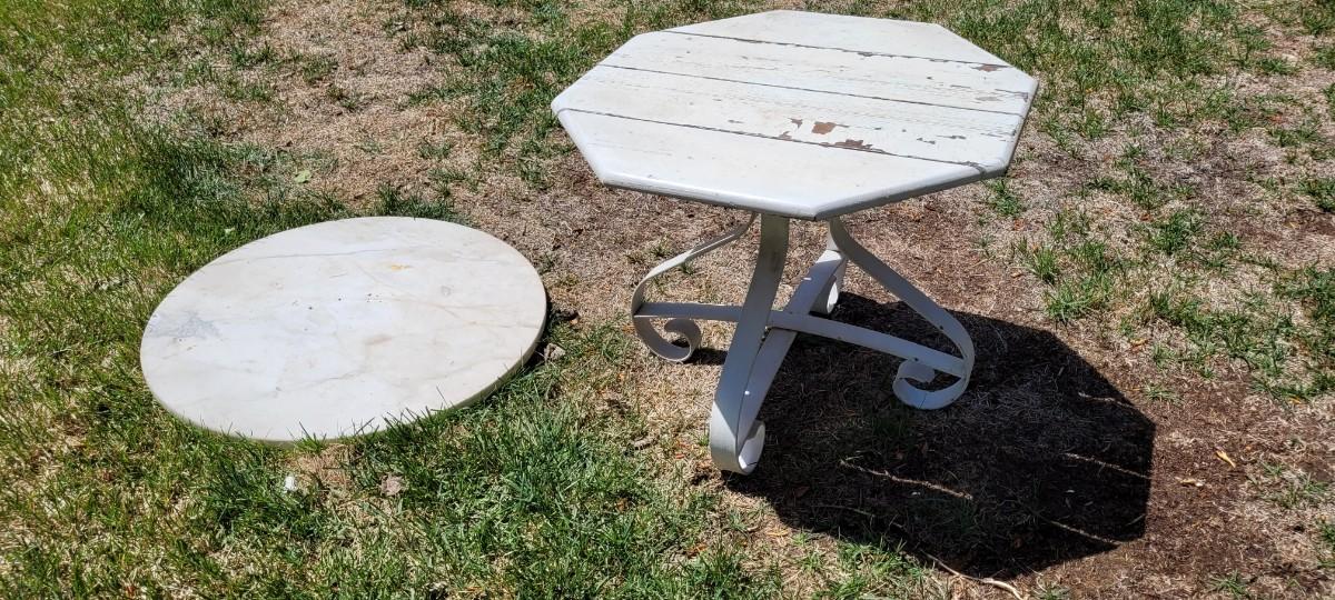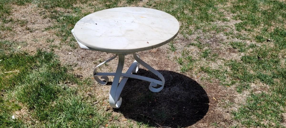 Lot 58: Vintage Outdoor Metal Table with Marble Top