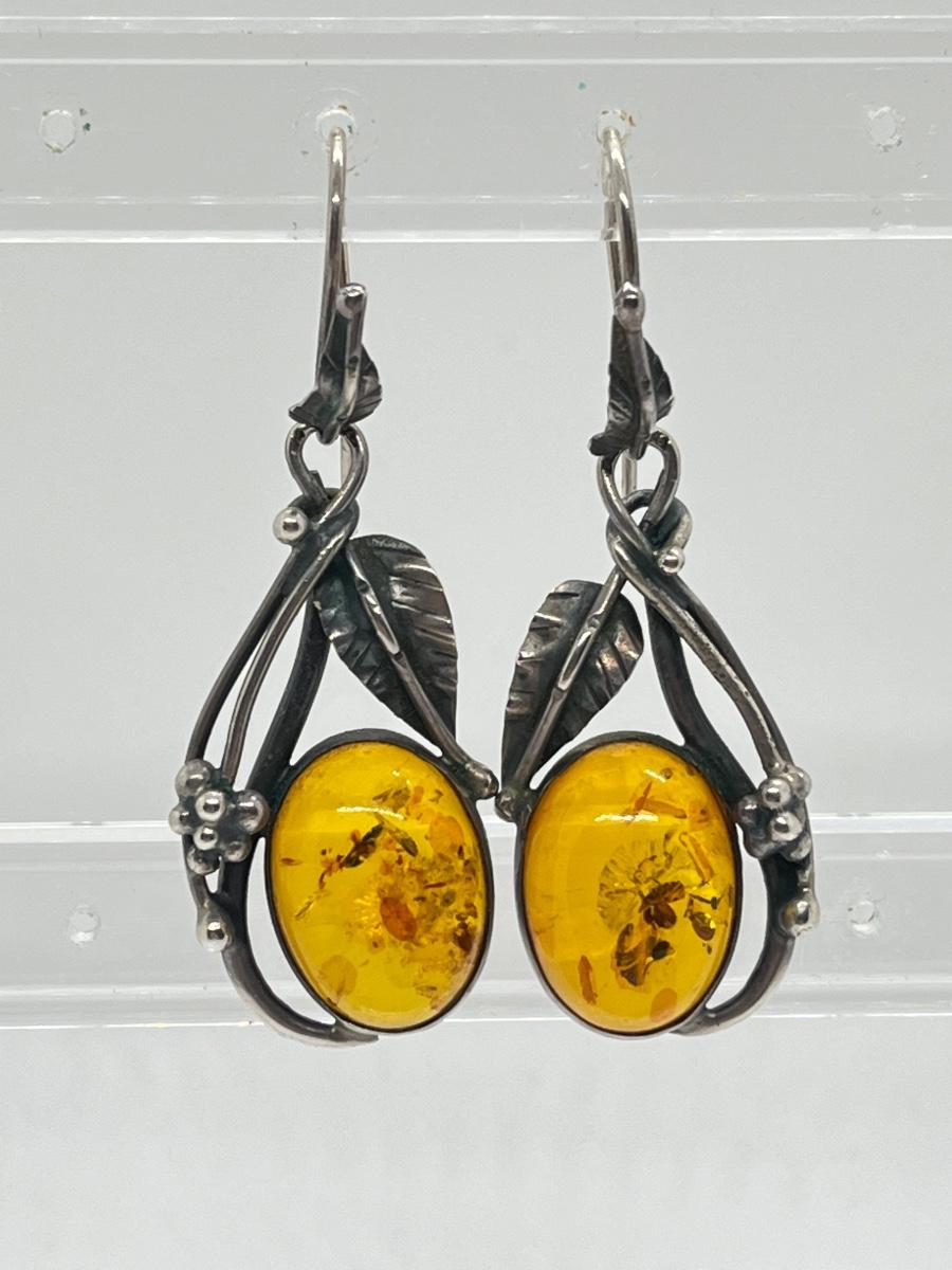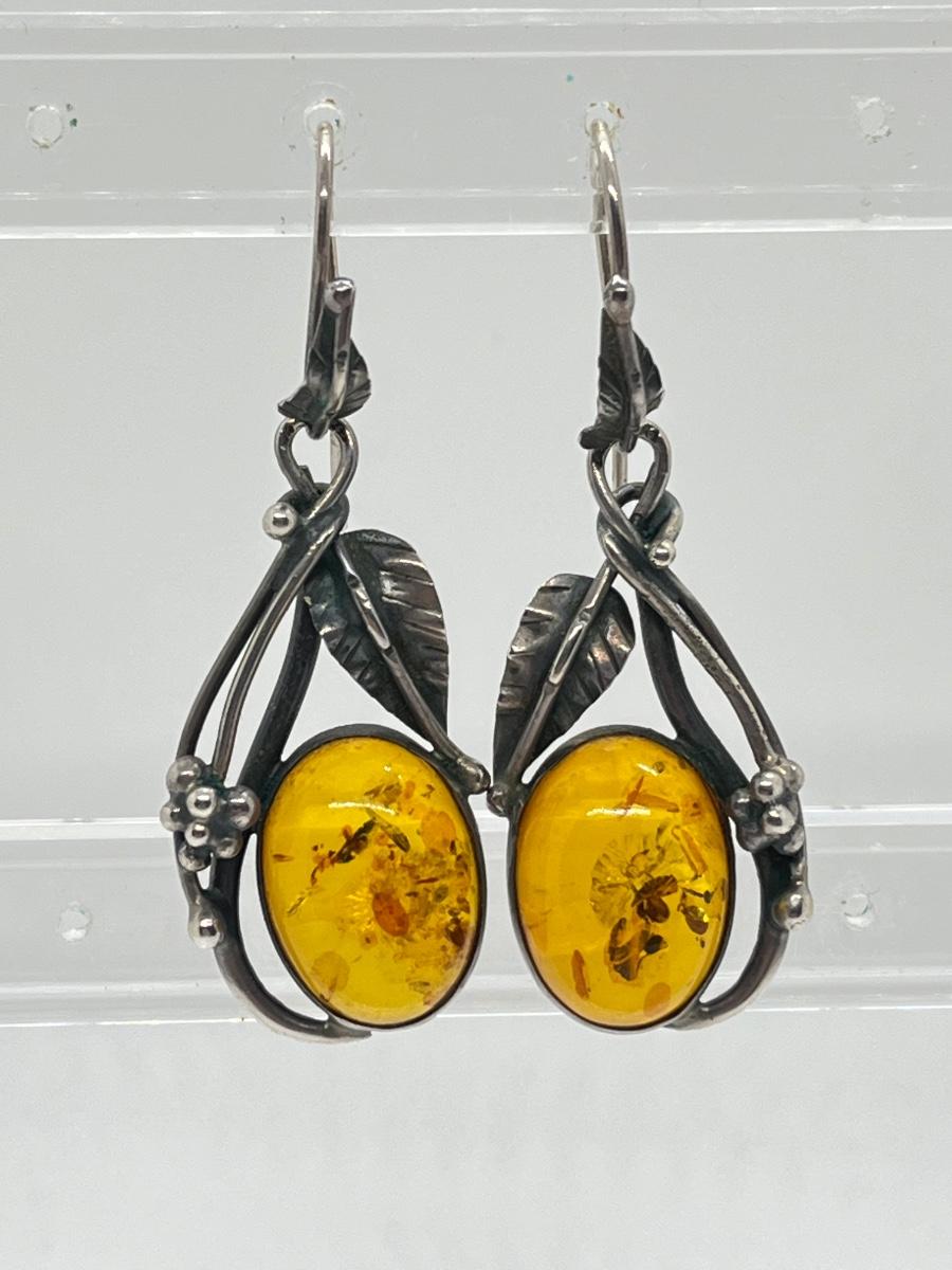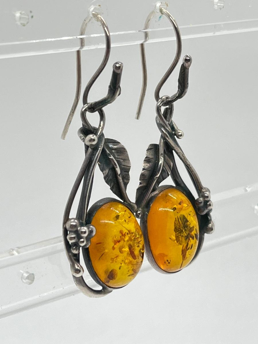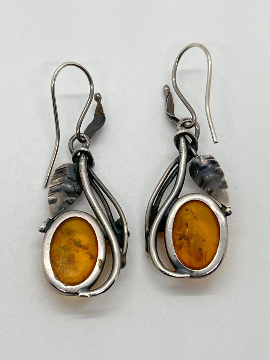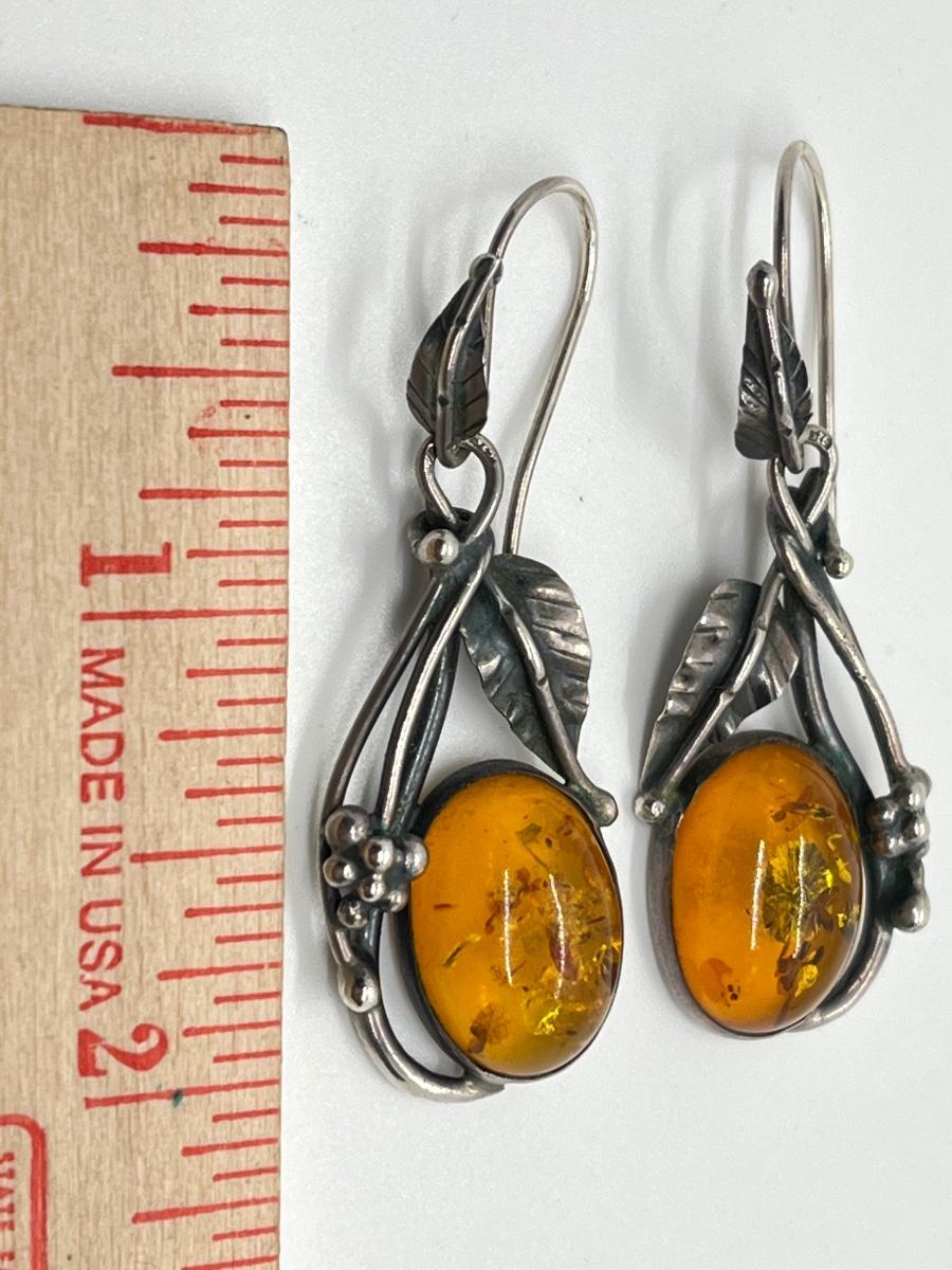 LOT 58: Artisan Handcrafted Sterling Silver and Amber Pierced Earrings