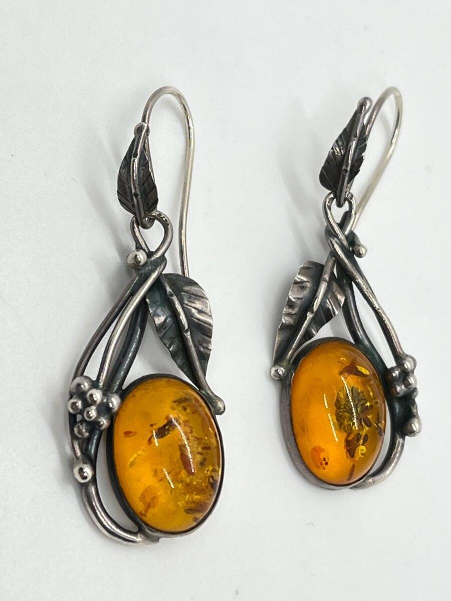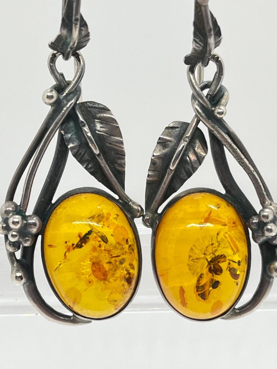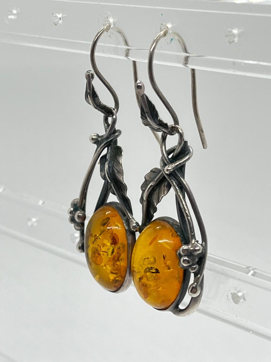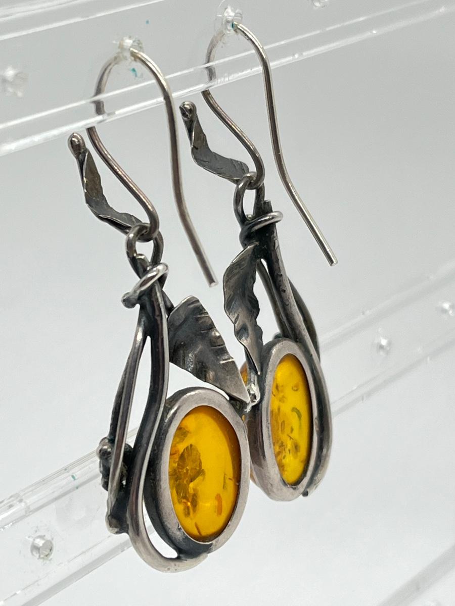 LOT 58: Artisan Handcrafted Sterling Silver and Amber Pierced Earrings
