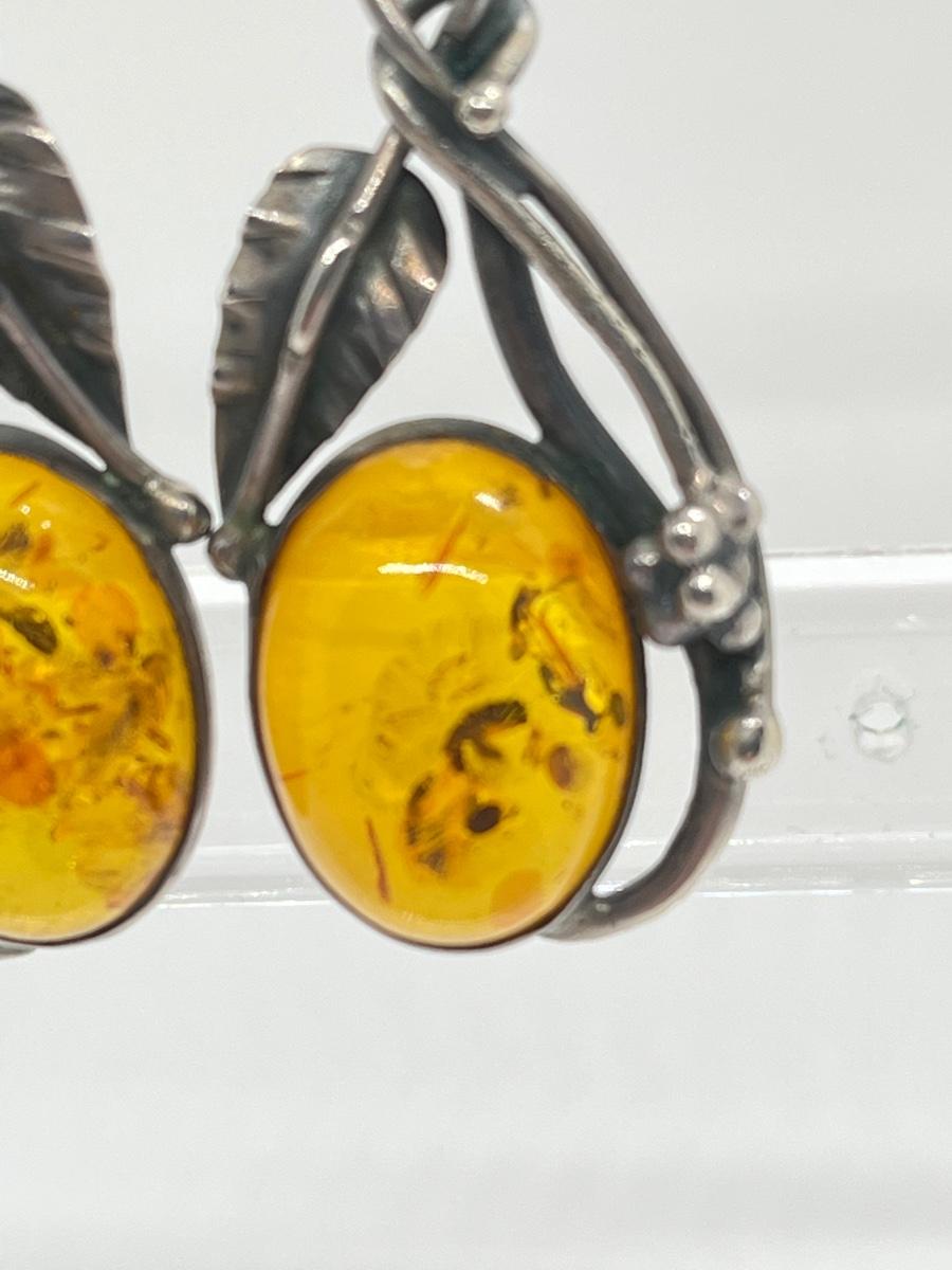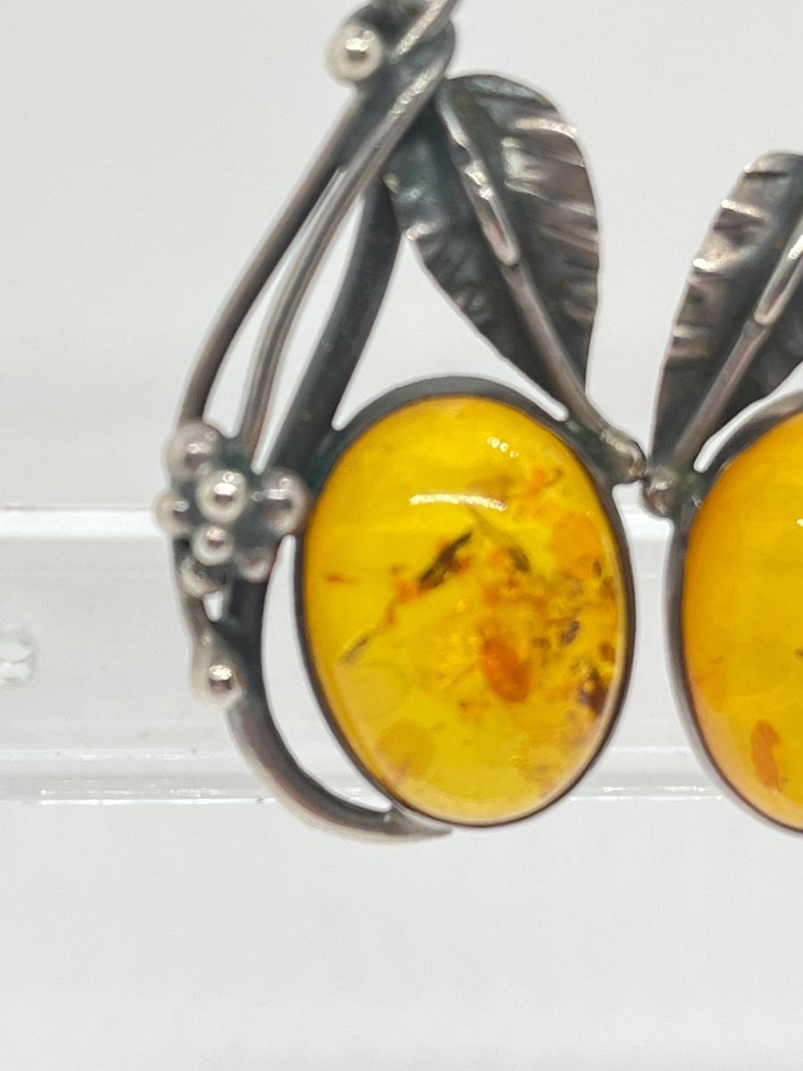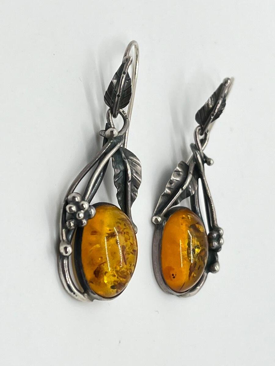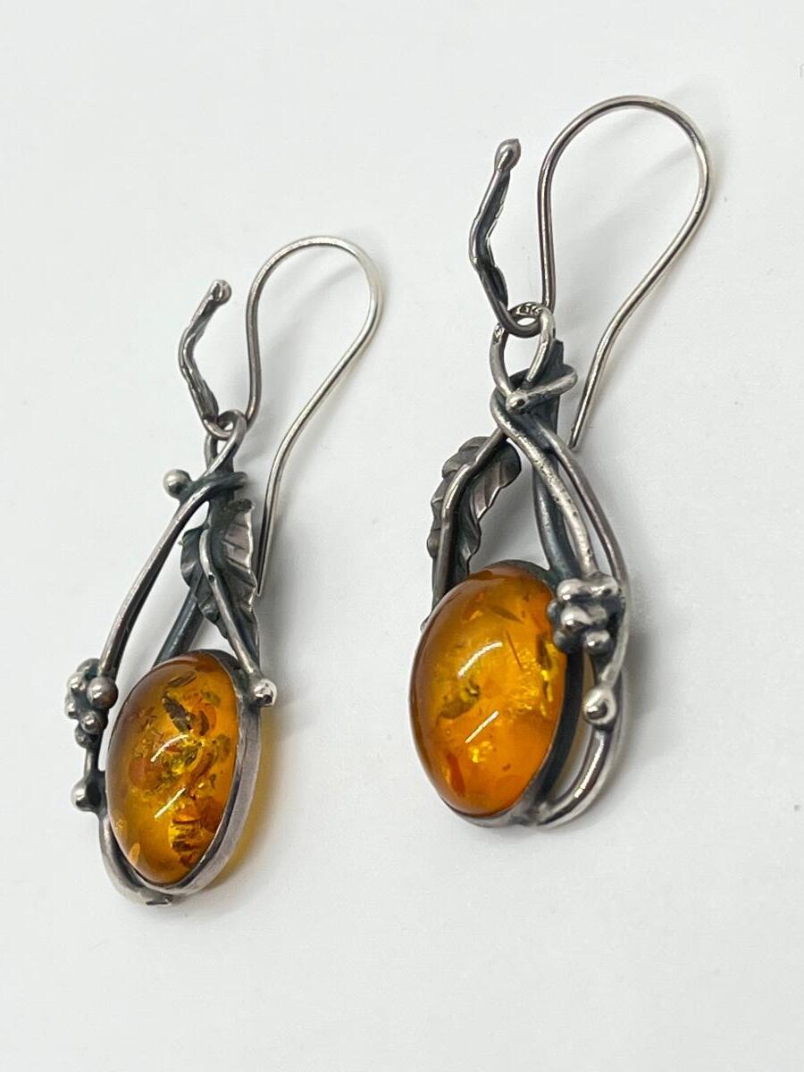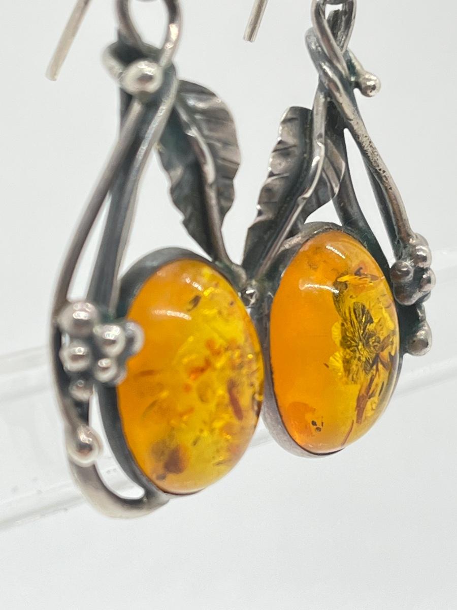 LOT 58: Artisan Handcrafted Sterling Silver and Amber Pierced Earrings
