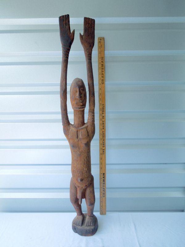 Lot 58: Dogon Male Figure With Raised Arms Wood Statue