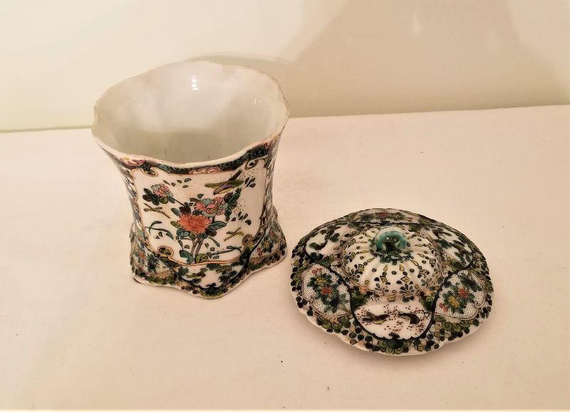 Sweet antique Chinese lidded jar - no mark. Good condition - 6" tall.