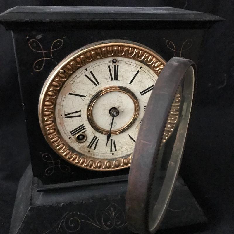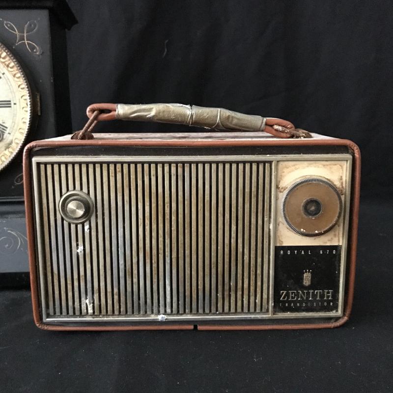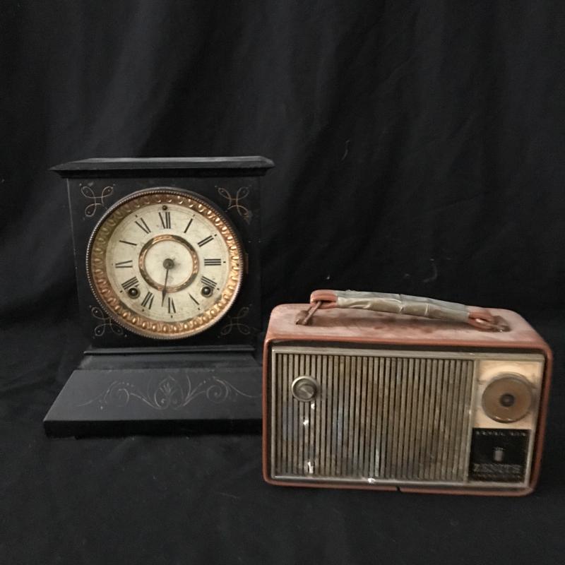 Ansonia Clock Co. table top clock (8” x 4” x 10.5”h). Antique Zenith Royal 670 in leather case with some duck tape on handle (8.5”x 3”x 5.5”h). Shipping or local pick up in Maggie Valley.