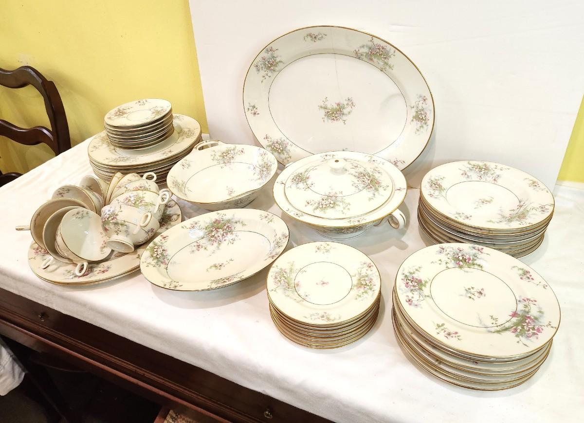 Lot #58 Antique Set of Theodore Havilland China in the Apple Blossom pattern