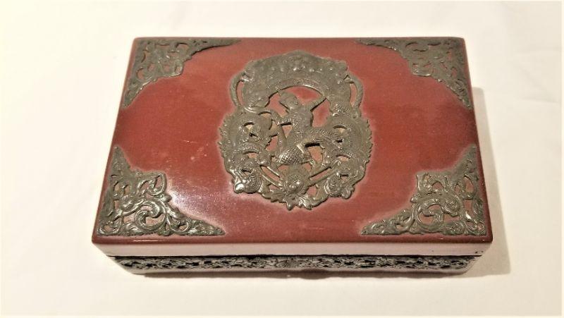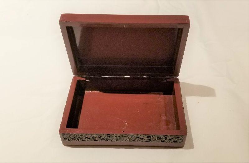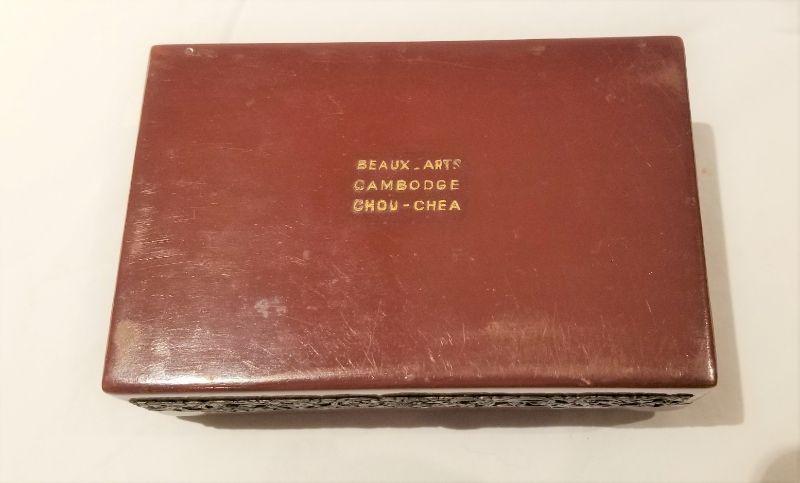 Great little box decorated with silverplate accents and a Hindu goddess. Measures 5.5 inches x 3 3/4 inches.