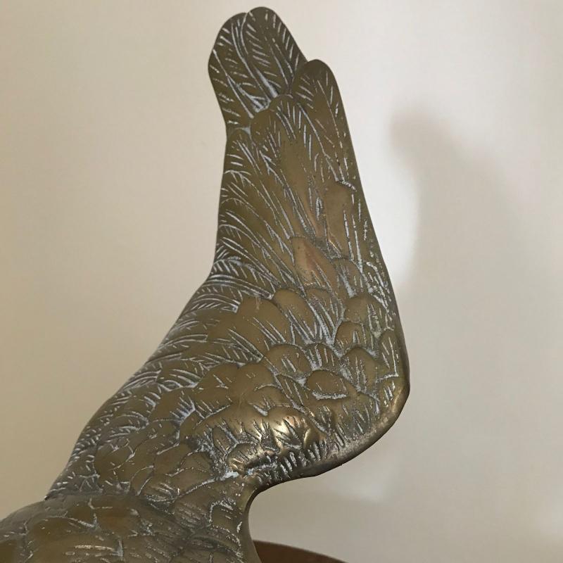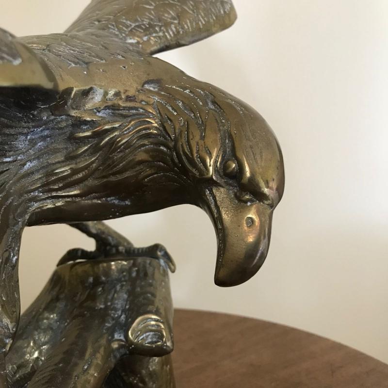 Impressive eagle sculpture made of brass. Nice details and a gorgeous design. This piece will make a statement. Do not see any artist signatures on piece. Measures approximately 18” x 11” x 16” Shipping available but please call UPS for a shipping quote prior to bidding as this piece is heavy and would likely be costly.