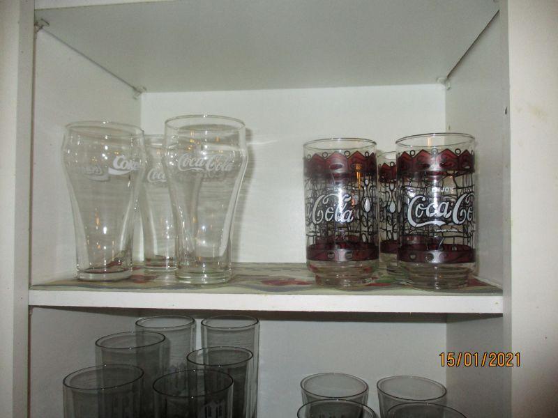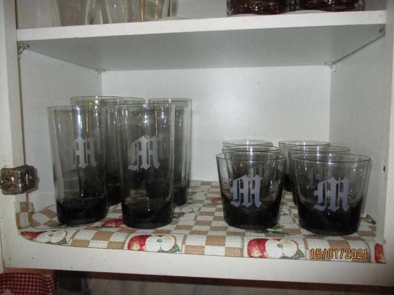 Coca-Cola and M monogrammed glasses. Please see pictures for more details.