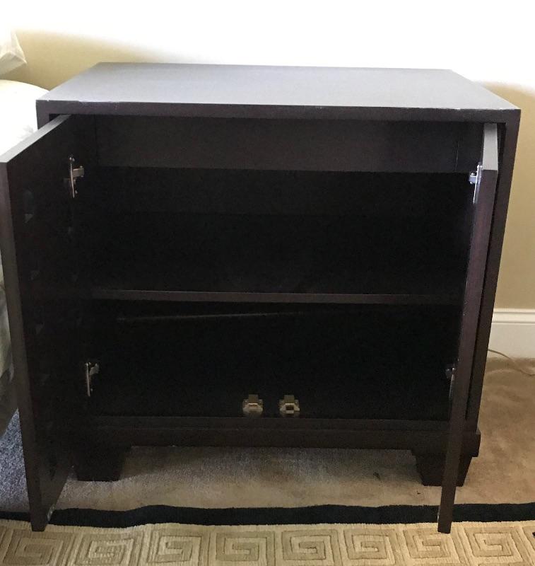 Nightstand measures 30” wide 22” deep and 28” high. Top has a Mahogany finish and the base has an antique Mahogany finish . Please bring help for moving