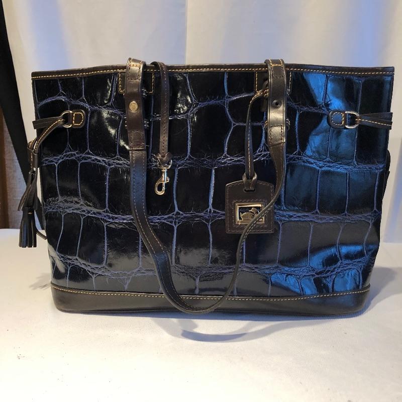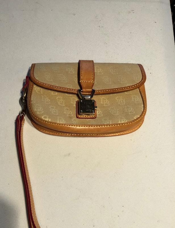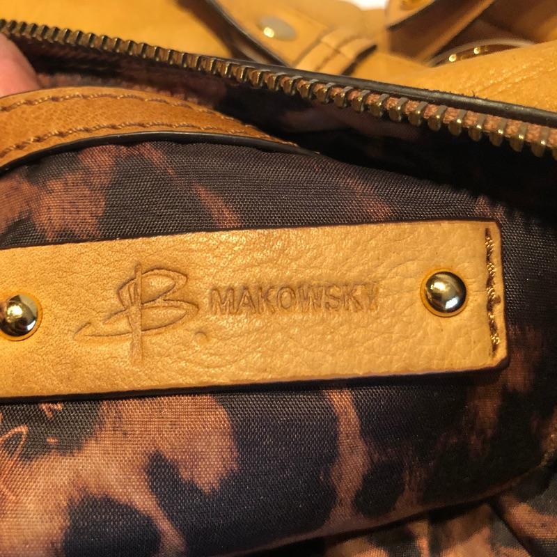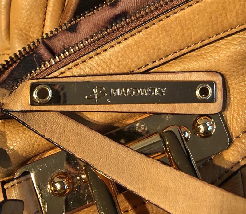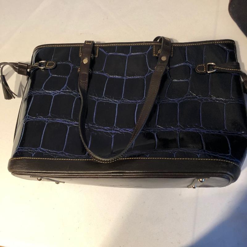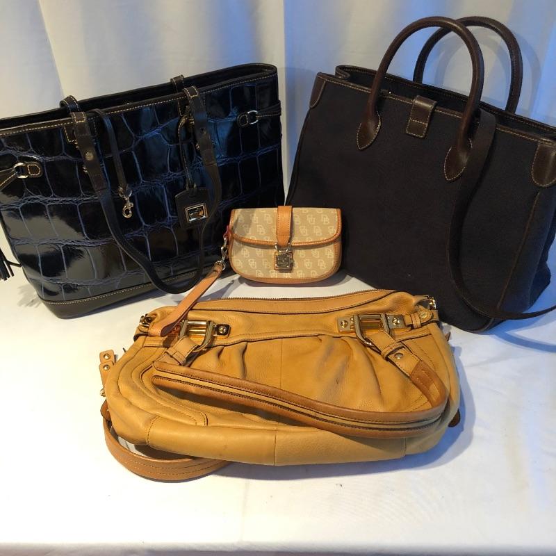 Look good wherever you go with these three beautiful designer purses and wallet. The two blue purses and wallet are Dooney & Burke. These luxury bags are a good size to fit all your necessities, one is canvas with DB logo embossed throughout and brown short and long leather handles, it has one small stain on the inside lining. The other is croco-embossed leather with brown short and long handles; the pink interior lining has some small stains. The wallet is in great shape. Last but not least is a tan Makowsky bag with lots of compartments to keep you organized; it has a few small stains in the leather but the leapard print interior has no visible stains.
