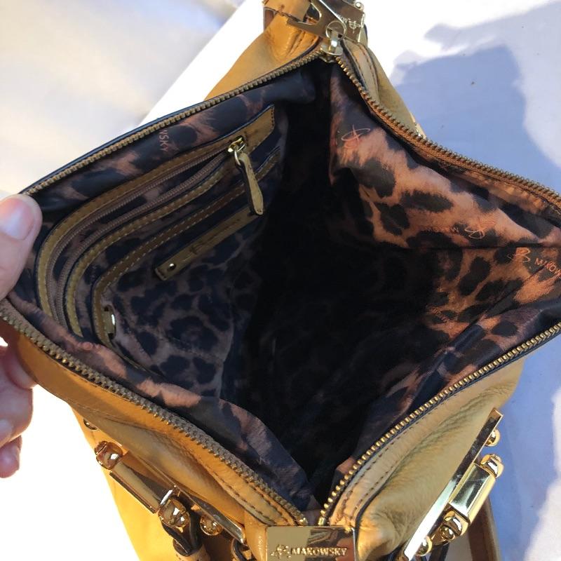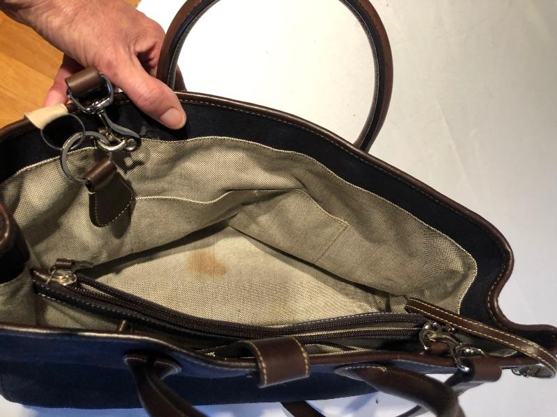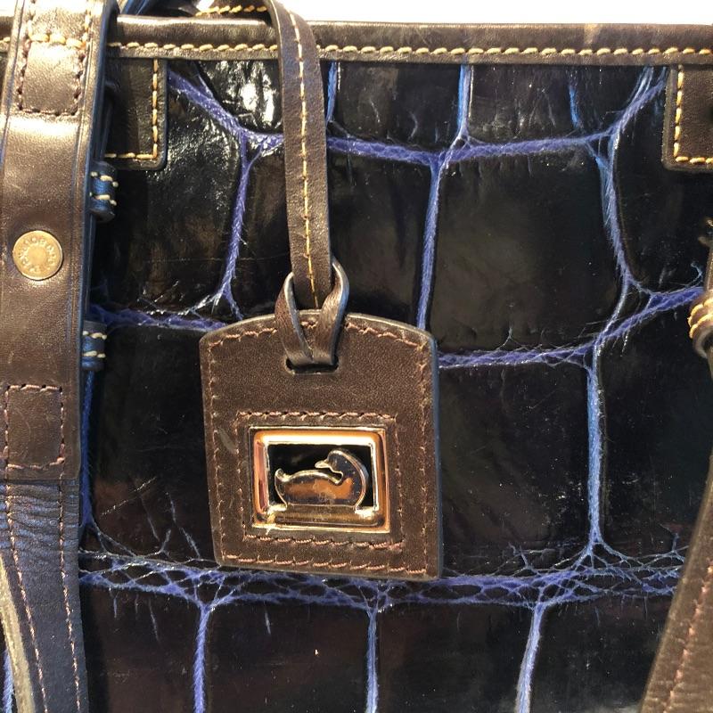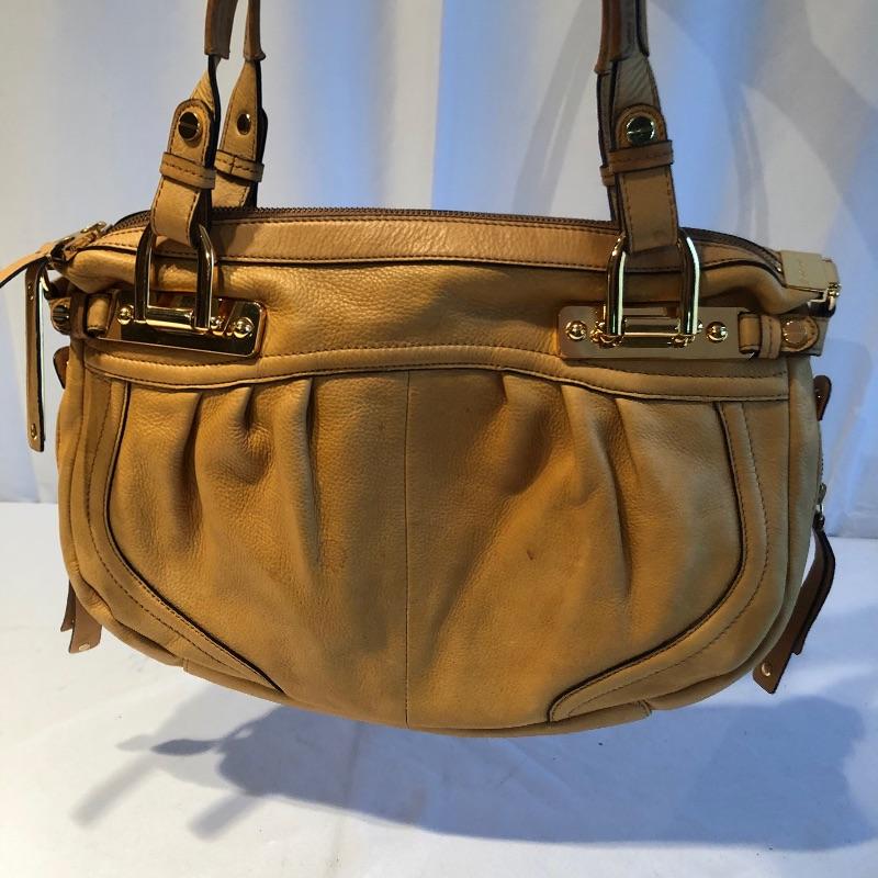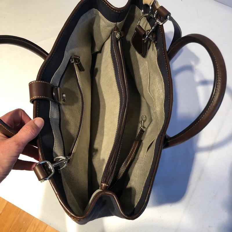 Look good wherever you go with these three beautiful designer purses and wallet. The two blue purses and wallet are Dooney & Burke. These luxury bags are a good size to fit all your necessities, one is canvas with DB logo embossed throughout and brown short and long leather handles, it has one small stain on the inside lining. The other is croco-embossed leather with brown short and long handles; the pink interior lining has some small stains. The wallet is in great shape. Last but not least is a tan Makowsky bag with lots of compartments to keep you organized; it has a few small stains in the leather but the leapard print interior has no visible stains.