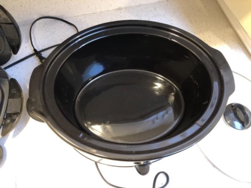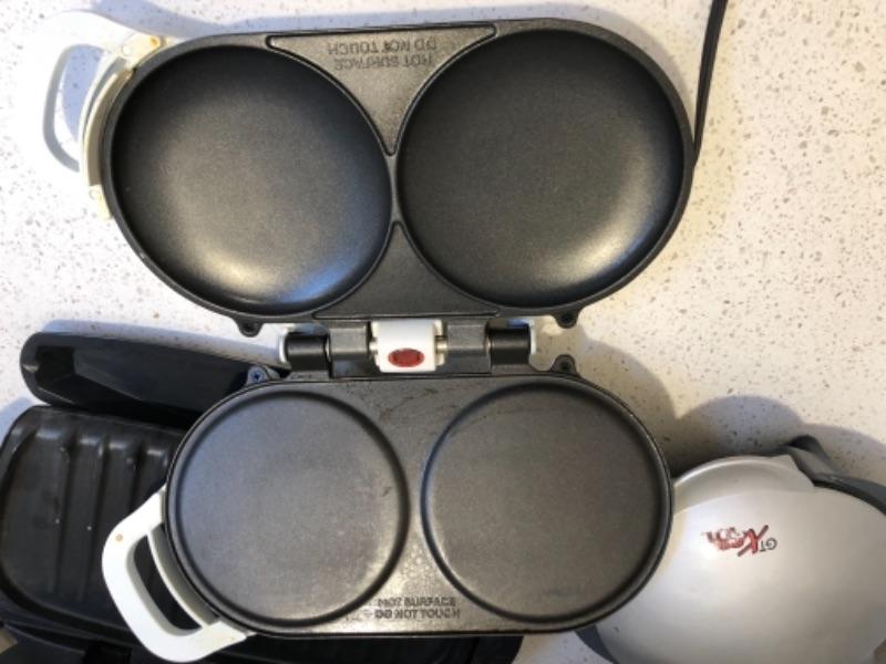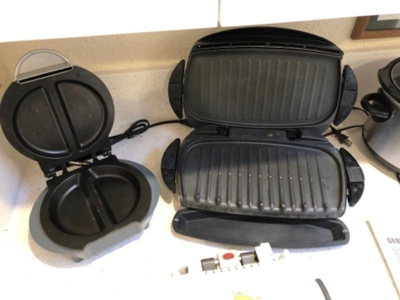 Lot 58. George Foreman pancake griddle, slow cooker rand other griddle appliances--WAS $65““NOW $48.50