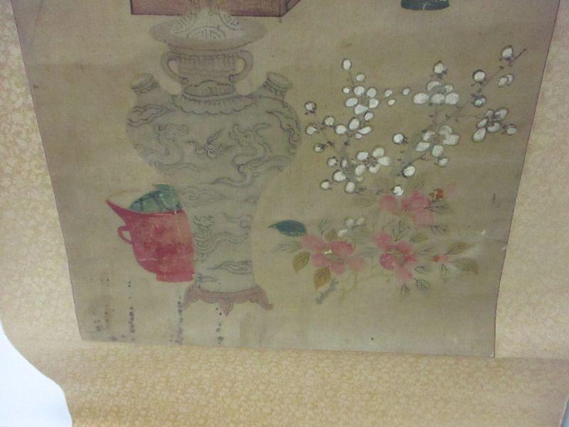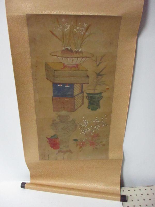 Vintage Asian Hanging Picture Scroll Snow Branch Flower Calligraphy Weighted
