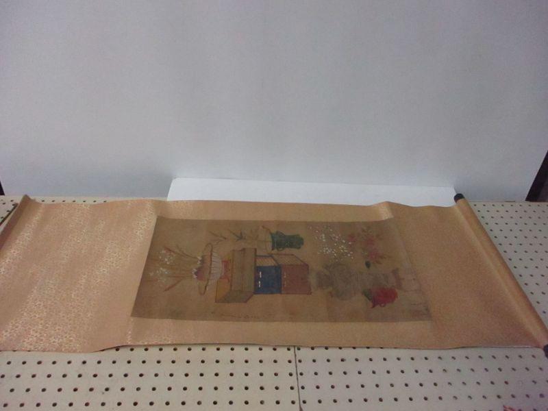Lot 58 - Vintage Asian Hanging Picture Scroll Calligraphy Weighted