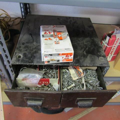 2 DRAWER METAL BOX FULL OF HARDWARE
