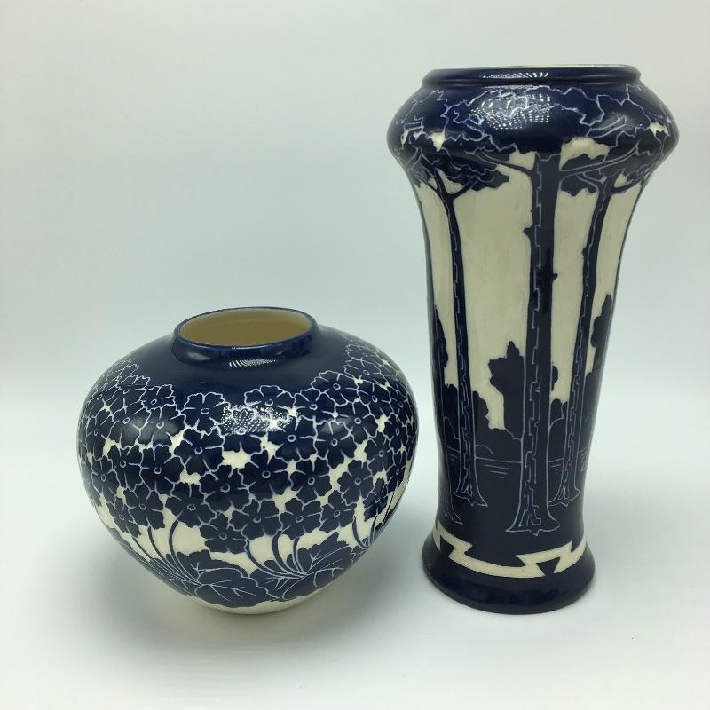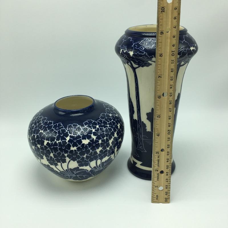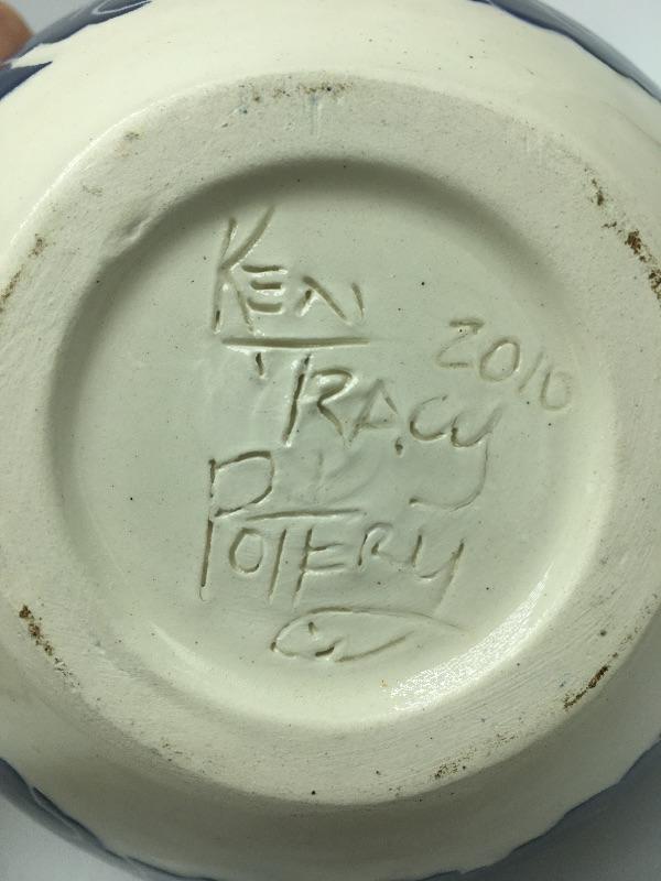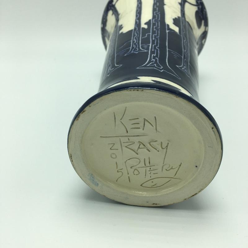 Ken Tracy pottery includes two vases tall vase is marked 2015 and shorter vase is marked 2010.