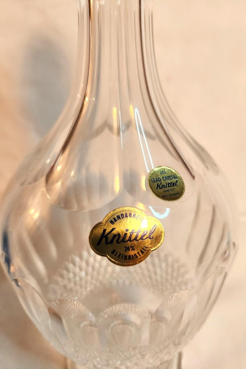 This vintage Knittel lead crystal decanter has the original foil label and appears to have never been used. 15" tall - looks good.