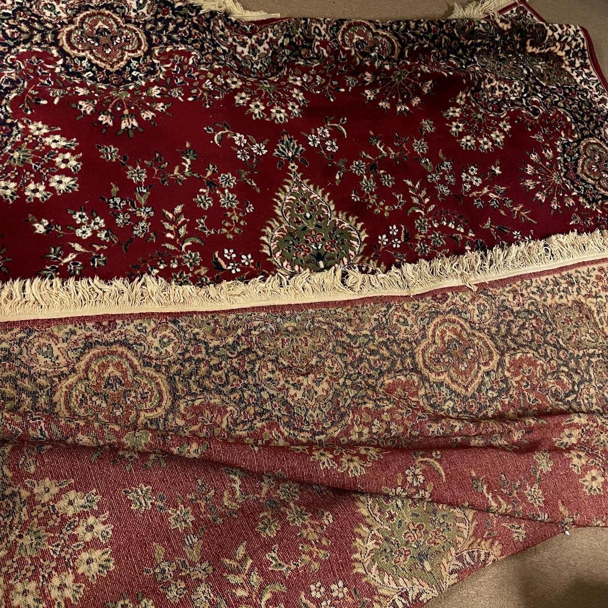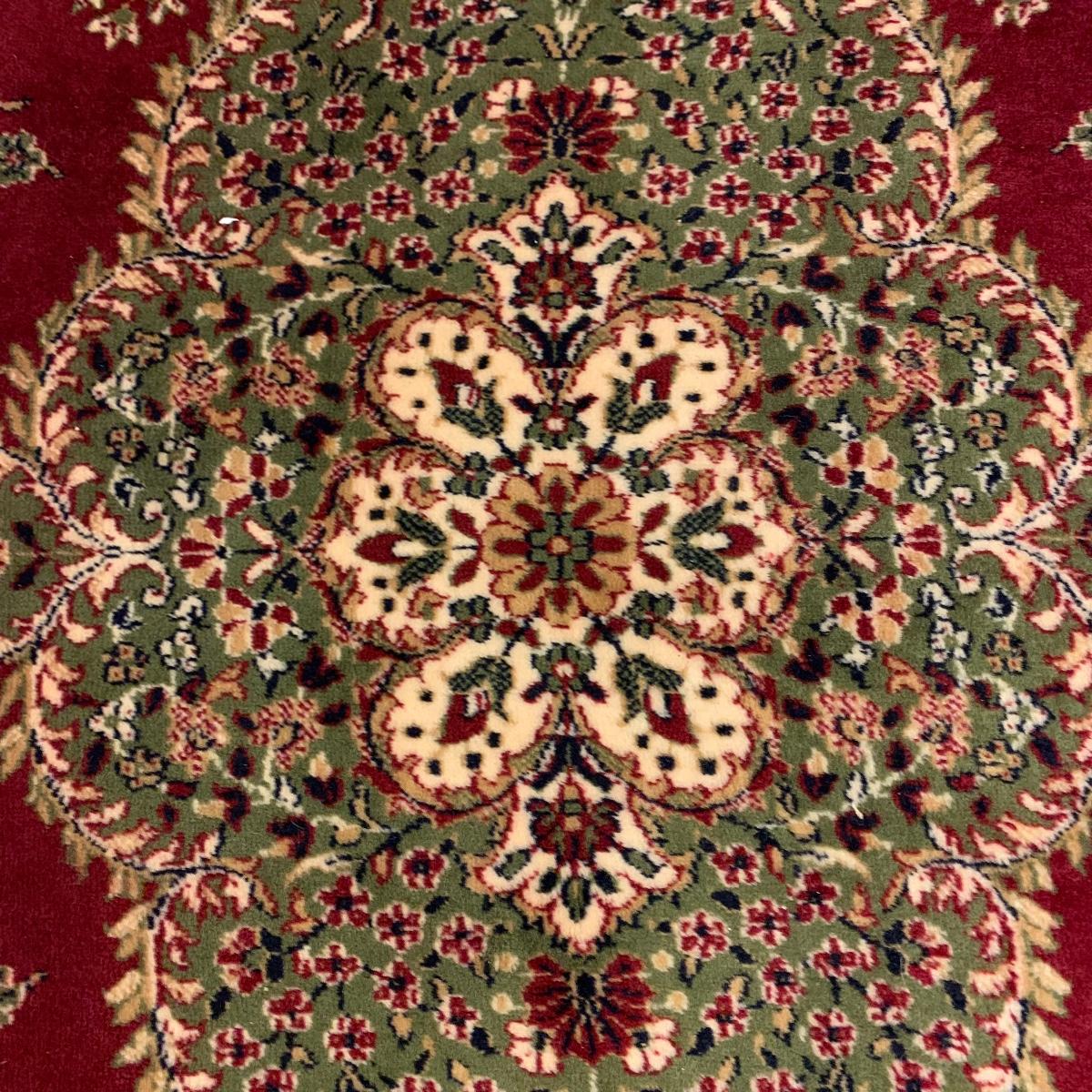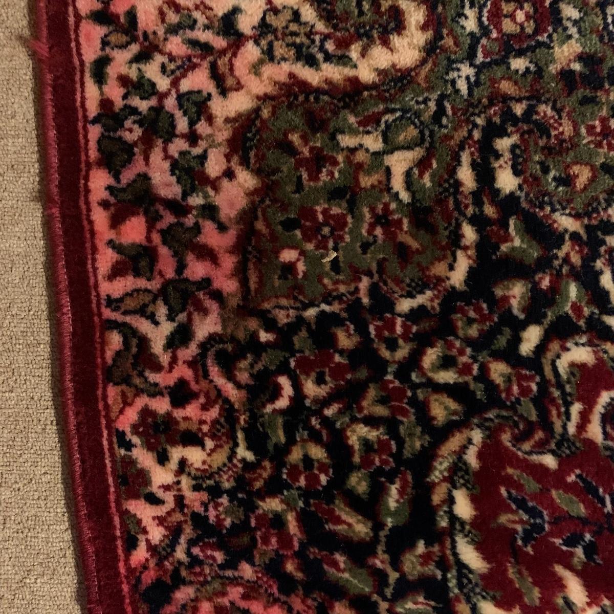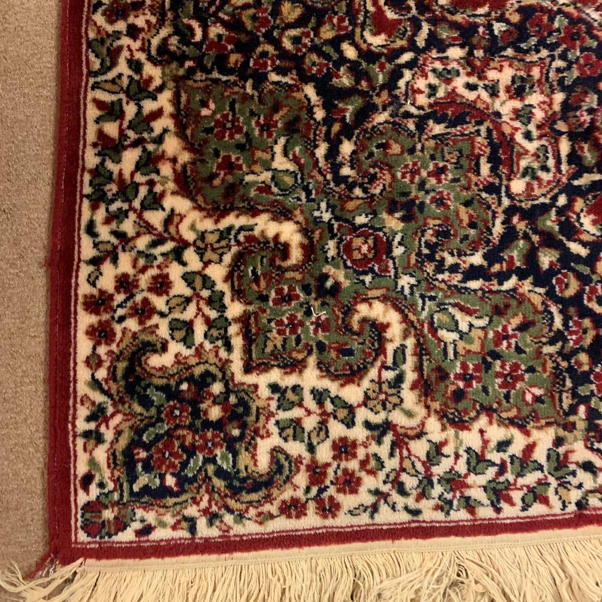 This is truly a beautiful area rug. It features a red and olive oriental motif that really brings color to a room. Measuring 125” X 96”, it would be great for a living or dining room. However there is a little damage. There is discoloration where a couch sat as well as a wine stain (see pics). A couch could easily cover this damaged area. Local pickup only.