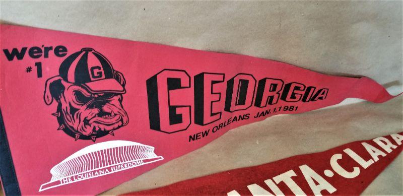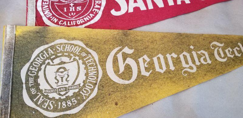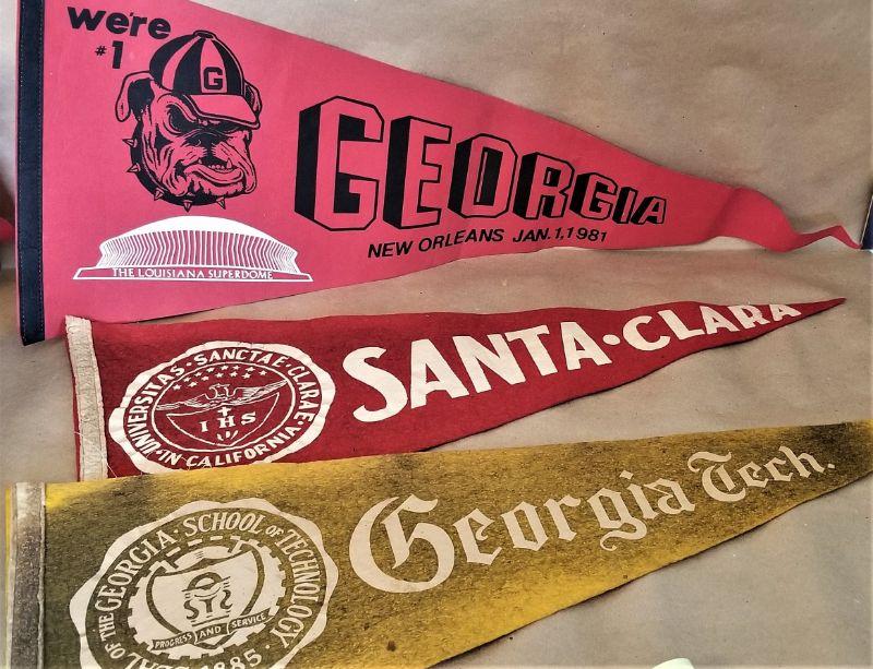Lot #58 Lot of 3 vintage Sports Pennants - Georgia Tech, Georgia Bulldogs, Santa Clara