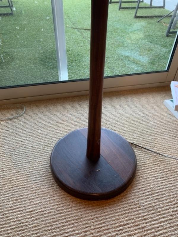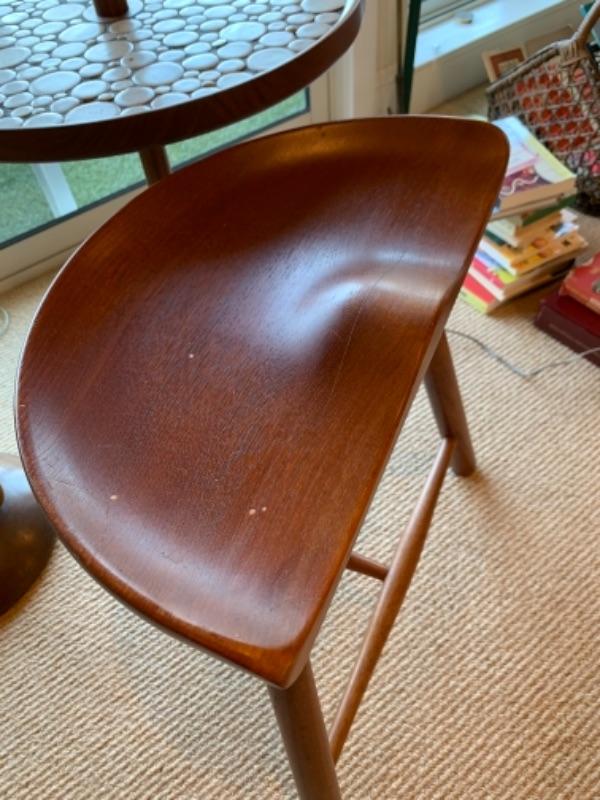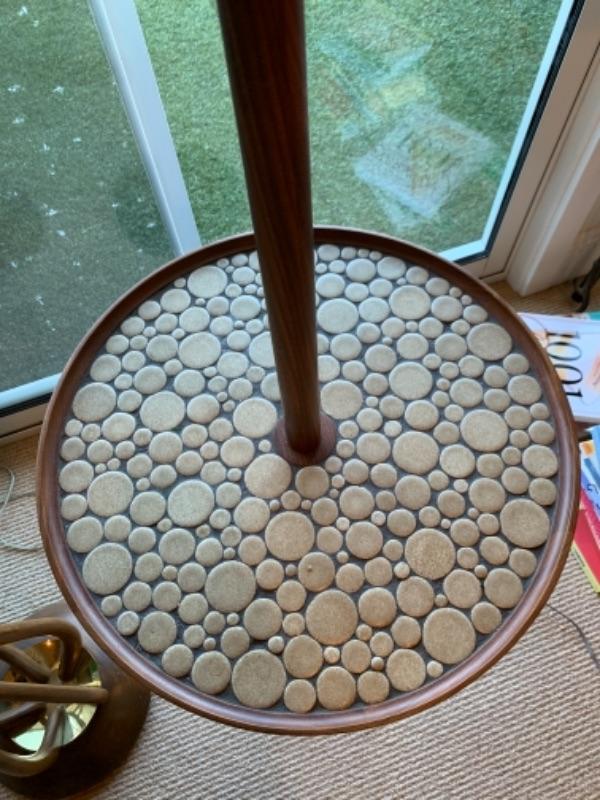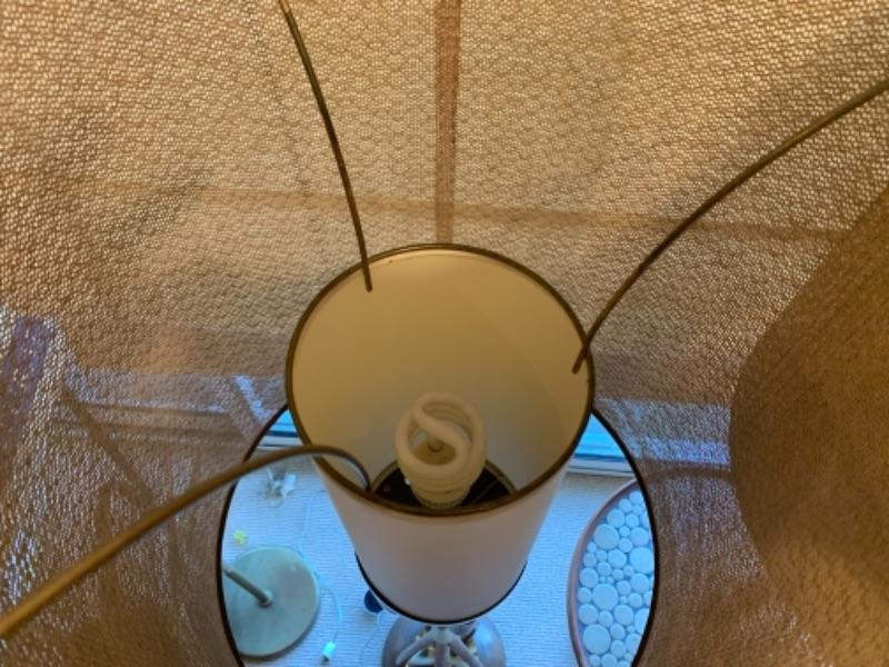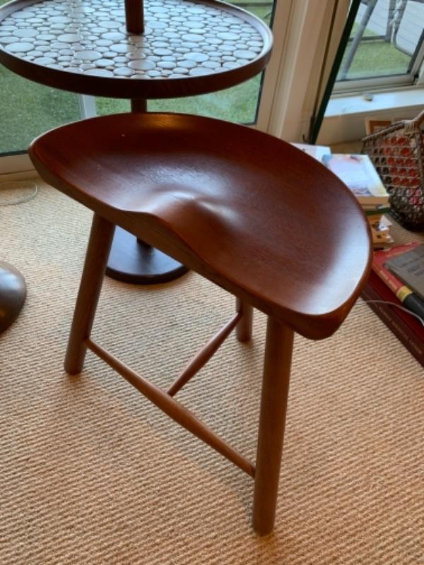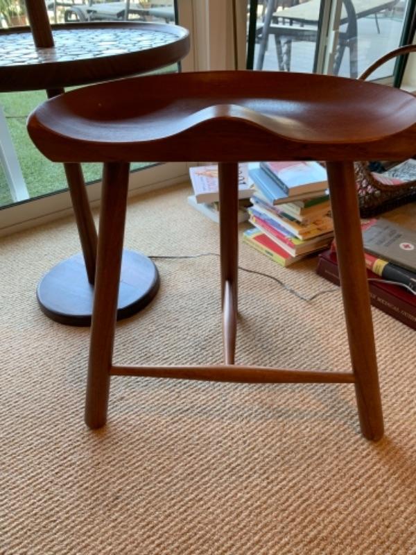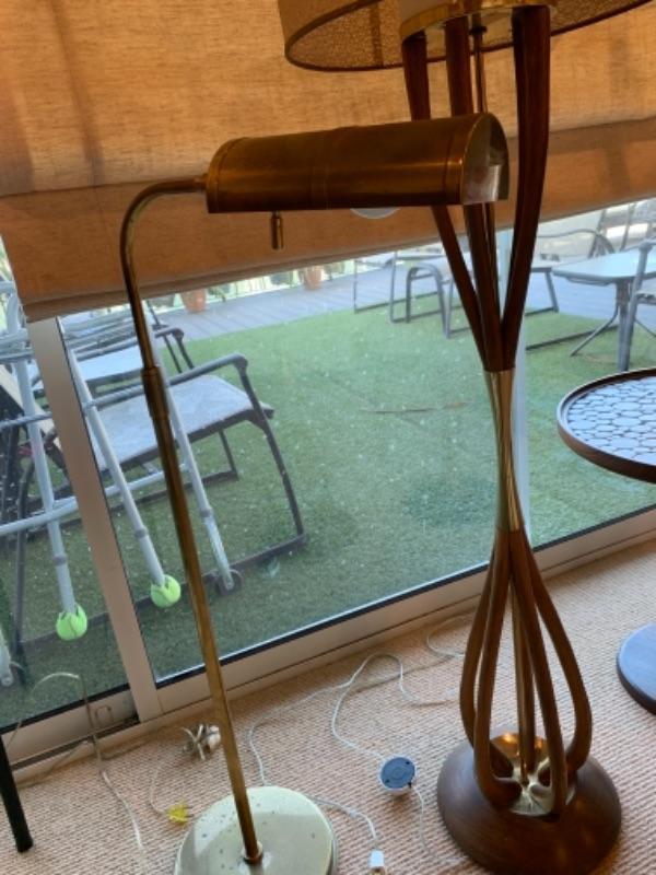 Lot 58. Lot of 3 lamps--one reading, and two wood mid-century, one with sea grass shade, one Mid-Century stool--$195