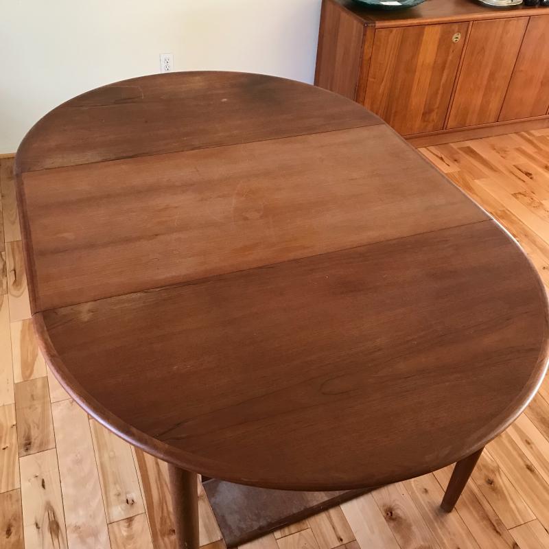 Measures 72” x 48” x 29” tall with one leaf in it. Additional leaf adds another 24”. Relatively normal wear with a few stains on top. This lot is available for local pick up in Asheville, NC only.