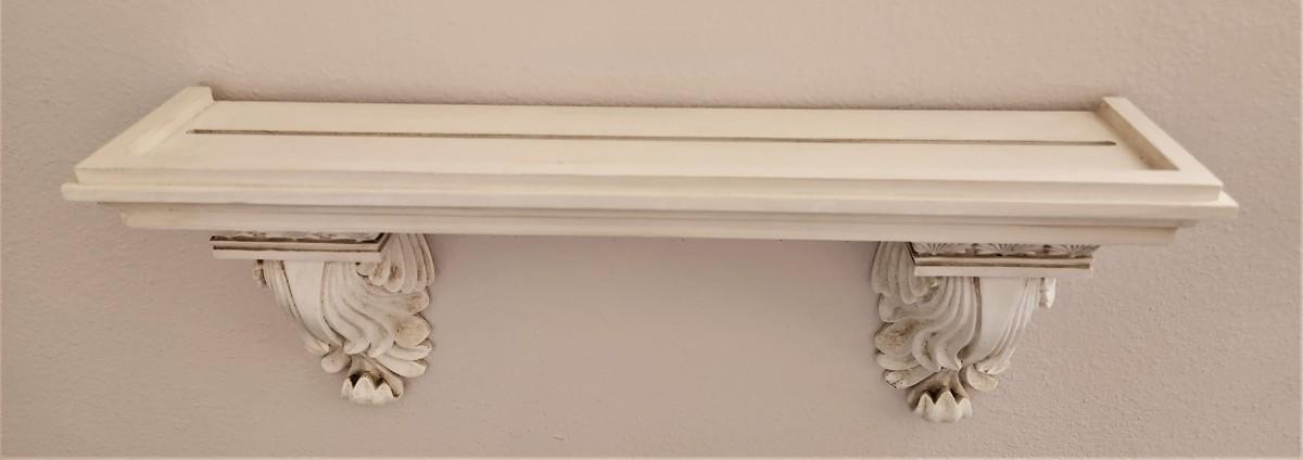 Matched pair of decorator wall shelves - each has a plate rail (as shown in photo). 22" across, 4.25" deep - good condition.