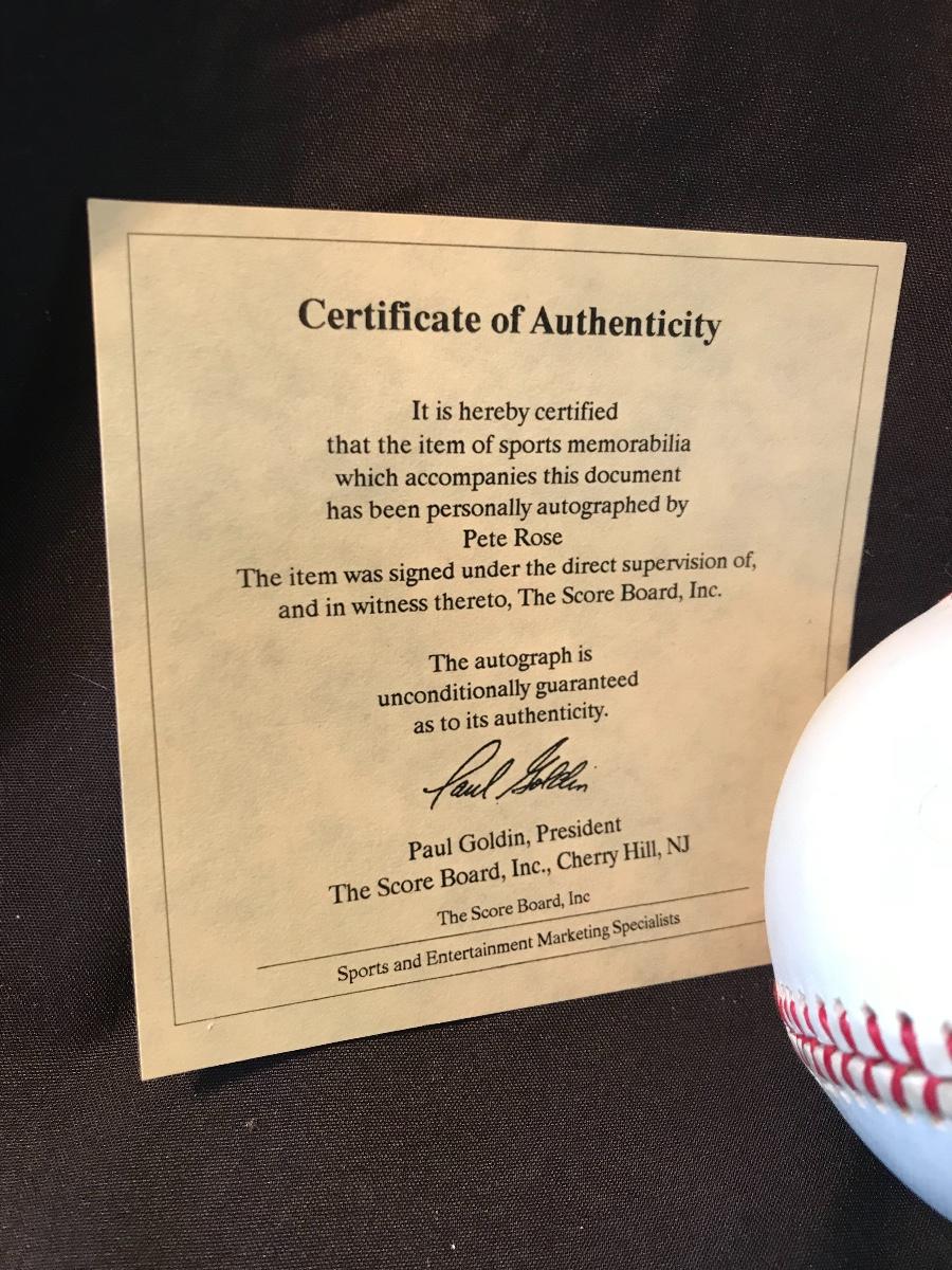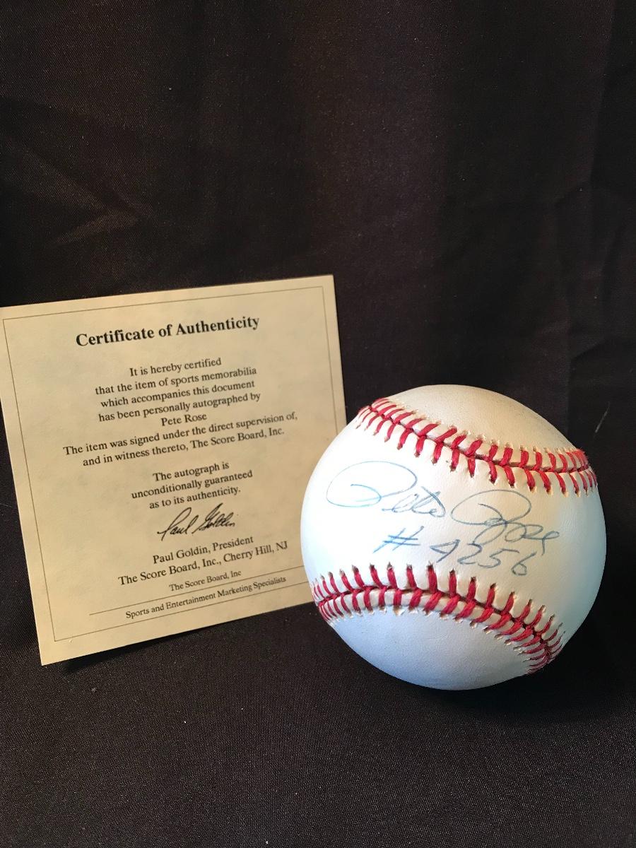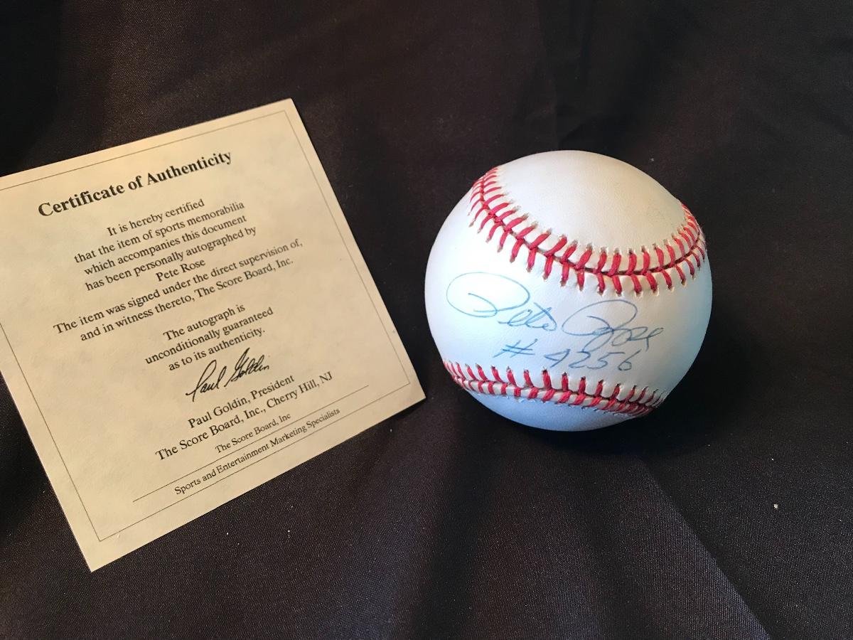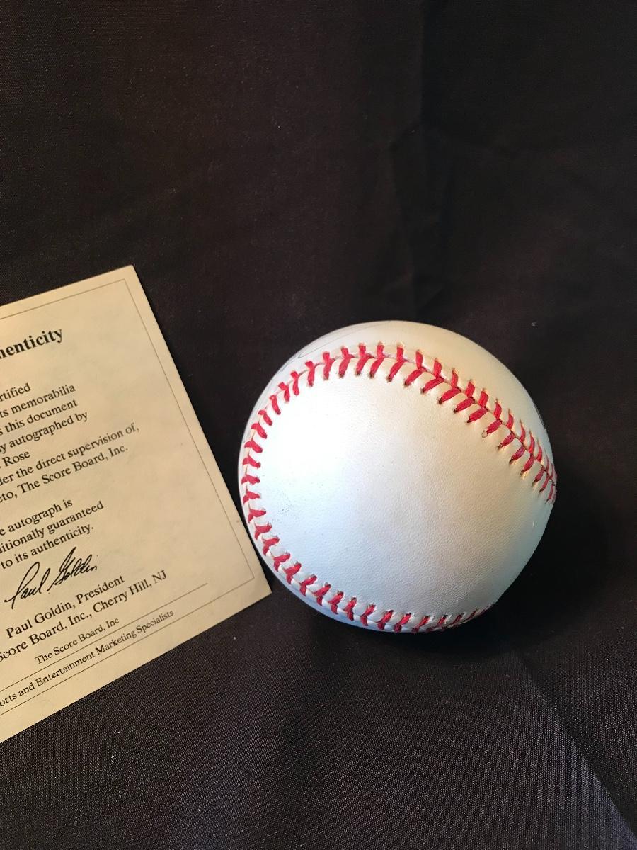 Pete Rose Signed Baseball COA. The pictures show condition, measurements if taken, and what is included in the lot. Due to the large amount that we photograph and the time frame, we are not always able to take measurements. All items unless noted, are pre-owned and have been used. If you purchased furniture, you must bring help. We do not allow one person to carry large furniture out on their own. Bring help, tools and a truck for the safety of our client’s homes, and your personal safety. Company policy. Thank you.
