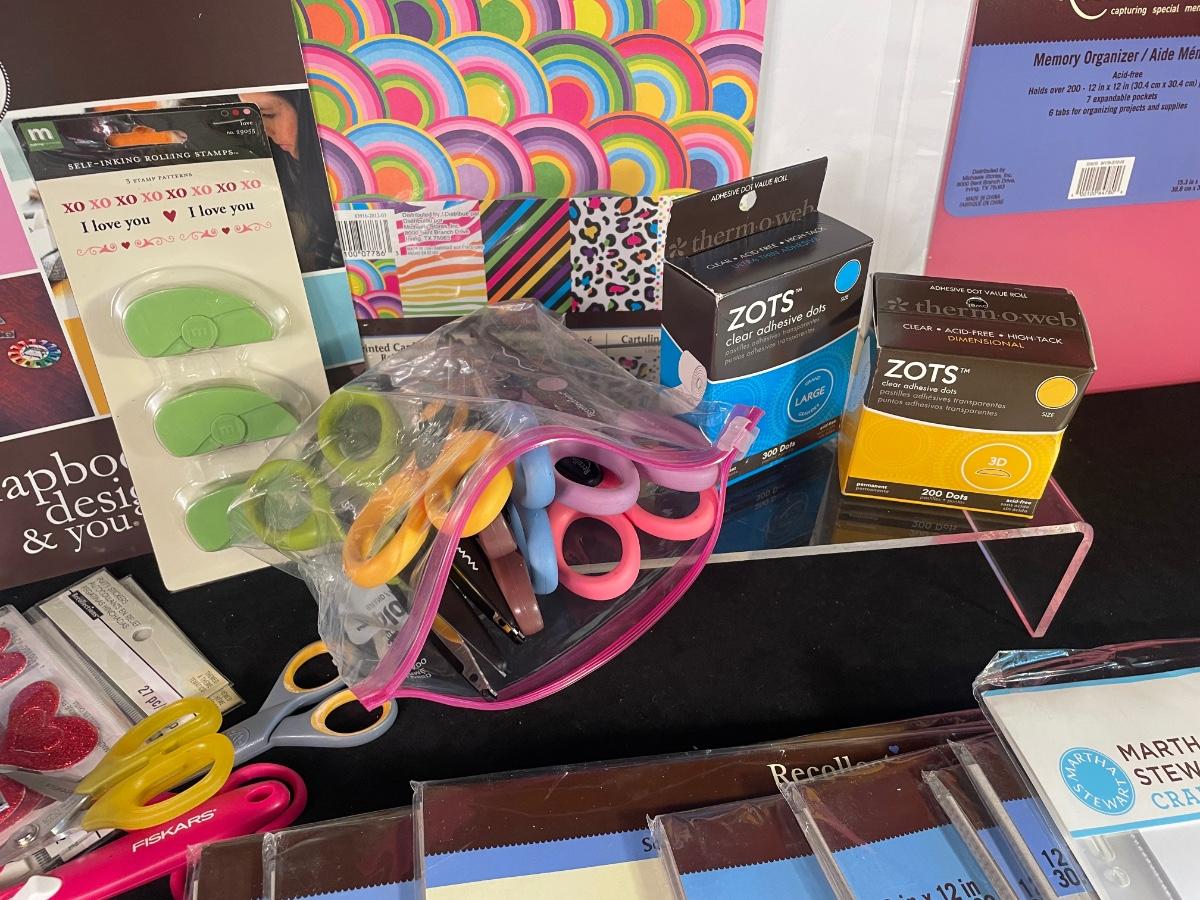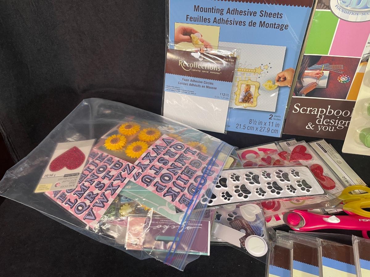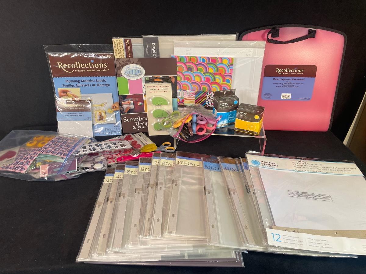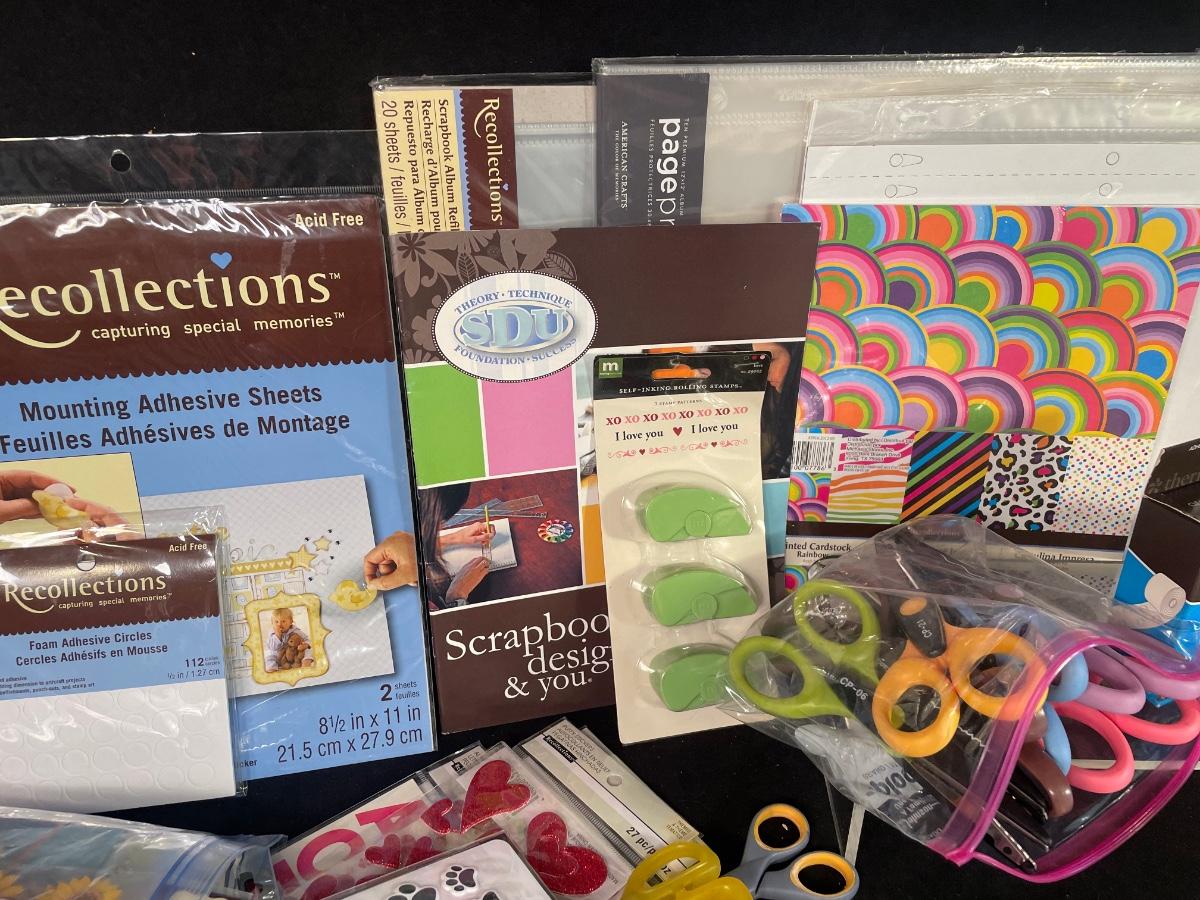 Scrapbook album refill pages, decorative edge scissors, carrying case, paper, mounting sheets, big bag of stickers, Zots and more...