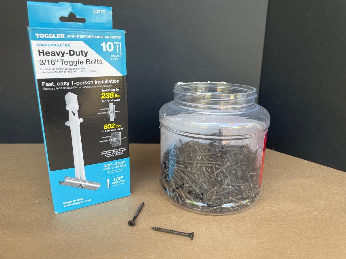 Lot 58  Sheet Rock Screws and Heavy Duty Toggle Bolts
