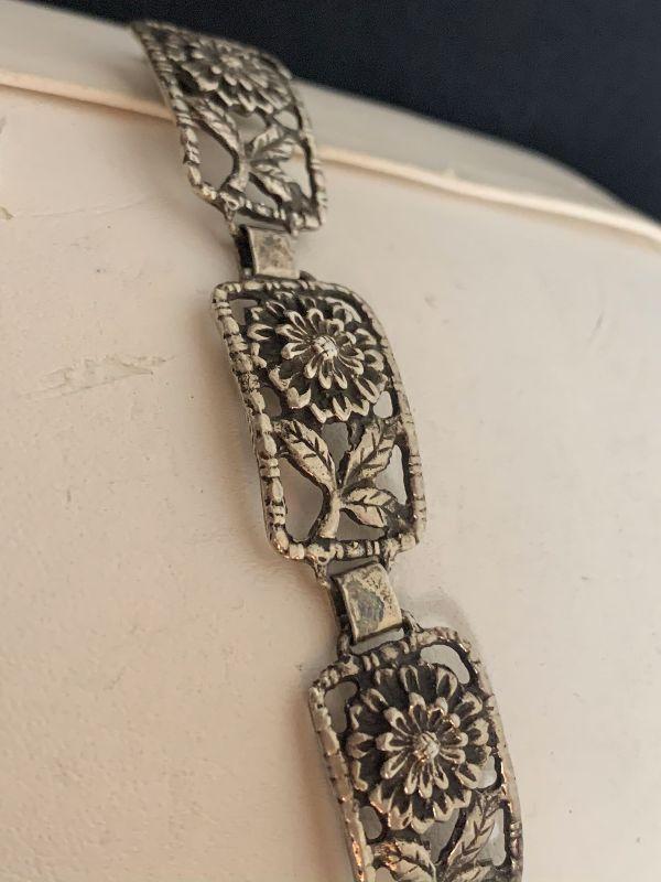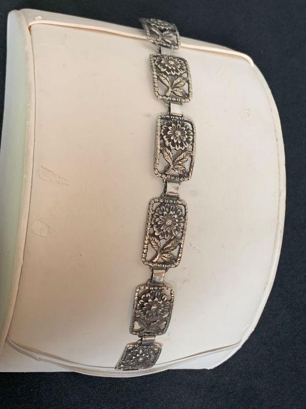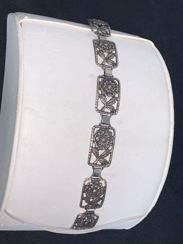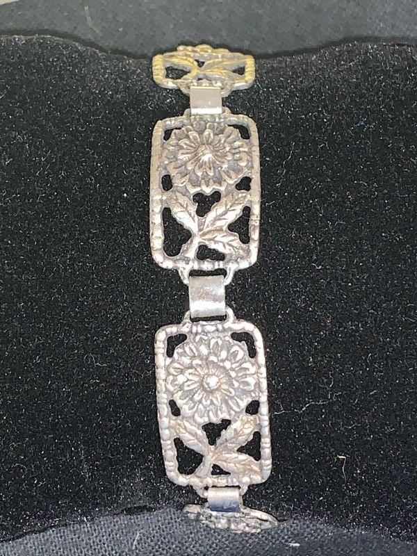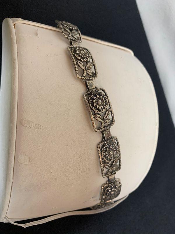 LOT # 58 STERLING FLOWER BRACELET 7" LONG