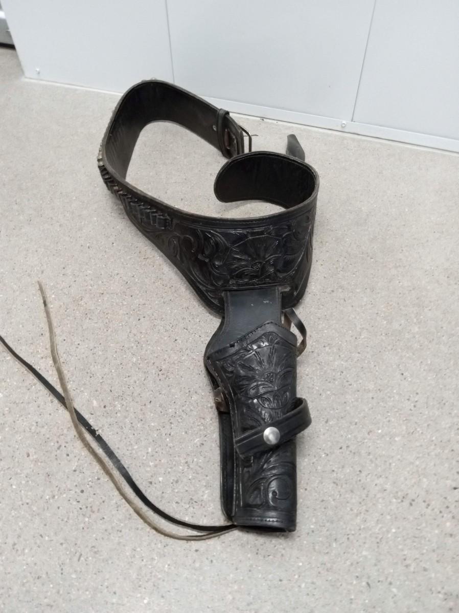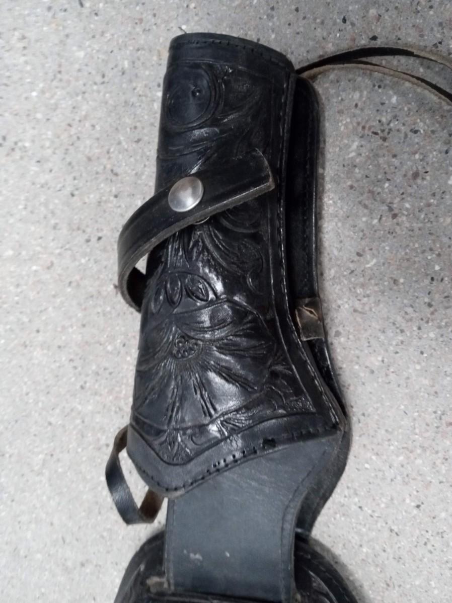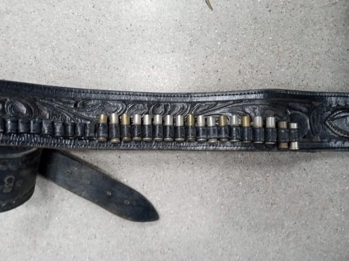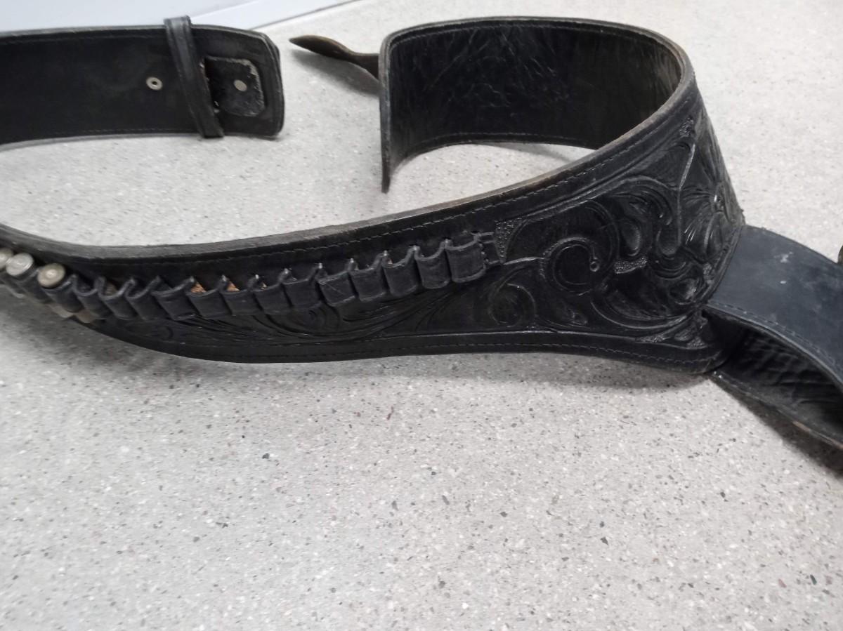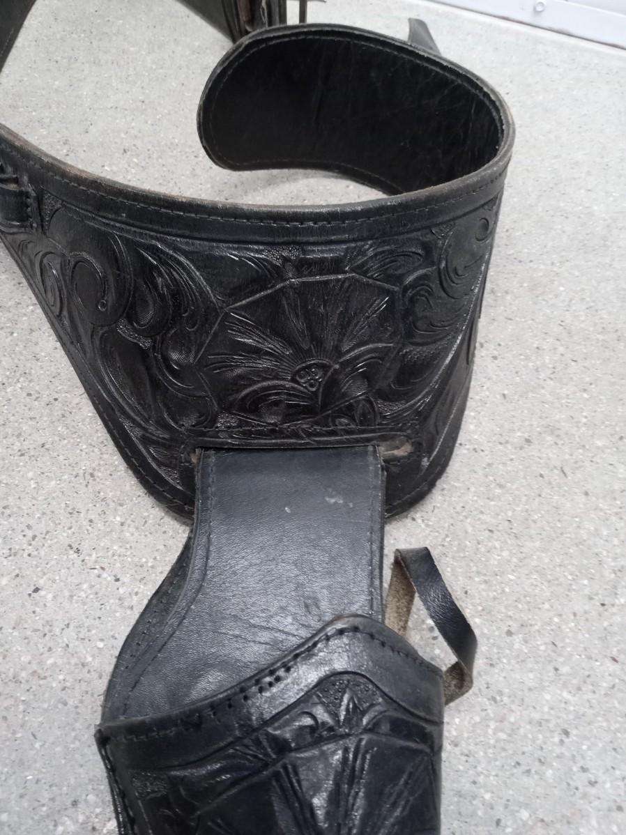 LOT 58W TOOLED LEATHER REVOLVER BELT HOLSTER