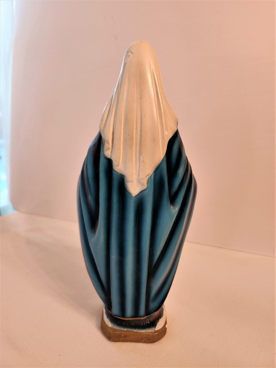 13" tall Virgin Mary plaster Statue - Columba Statuary Company, dated 1965. Usual small nicks, etc.