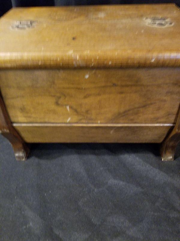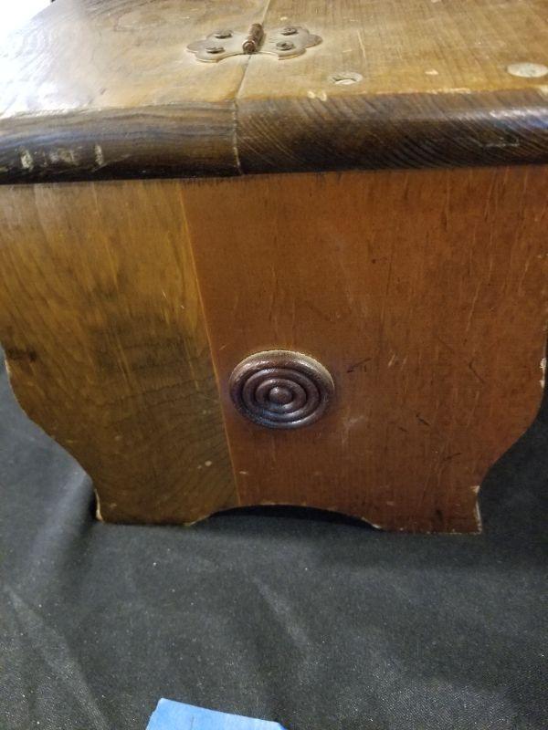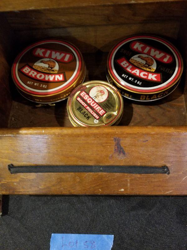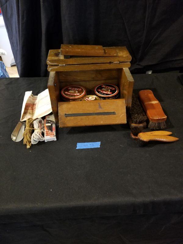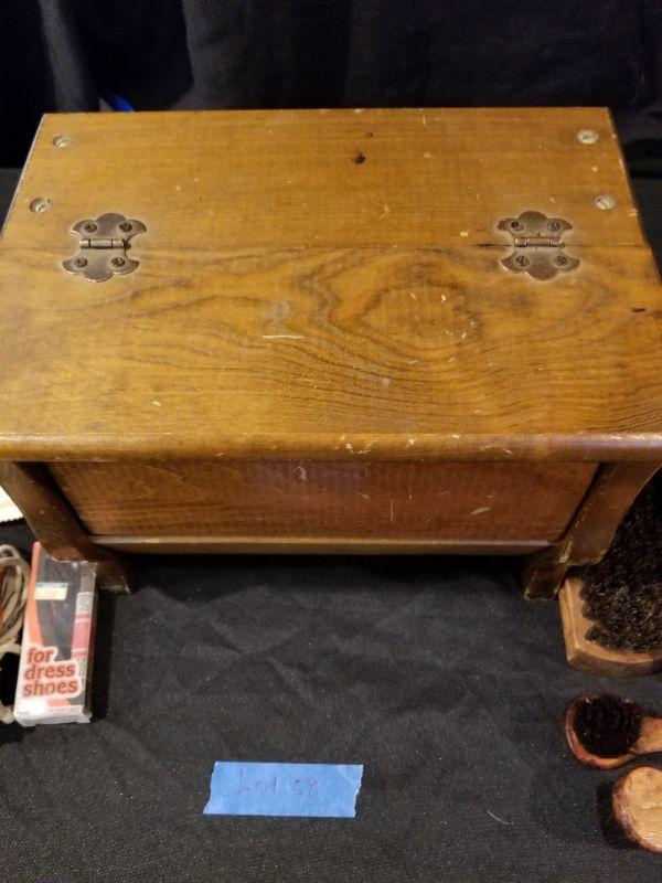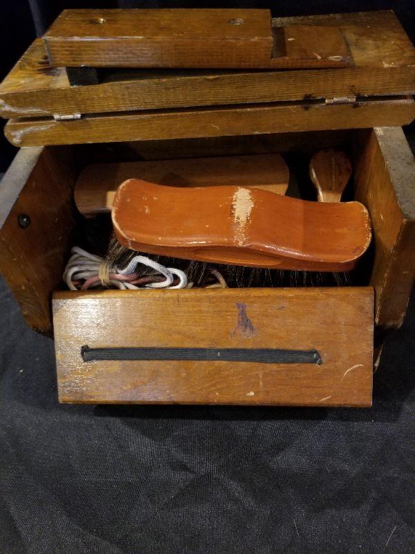 Lot 58 - Vintage Handmade Wooden Shoe Shine Box and Contents