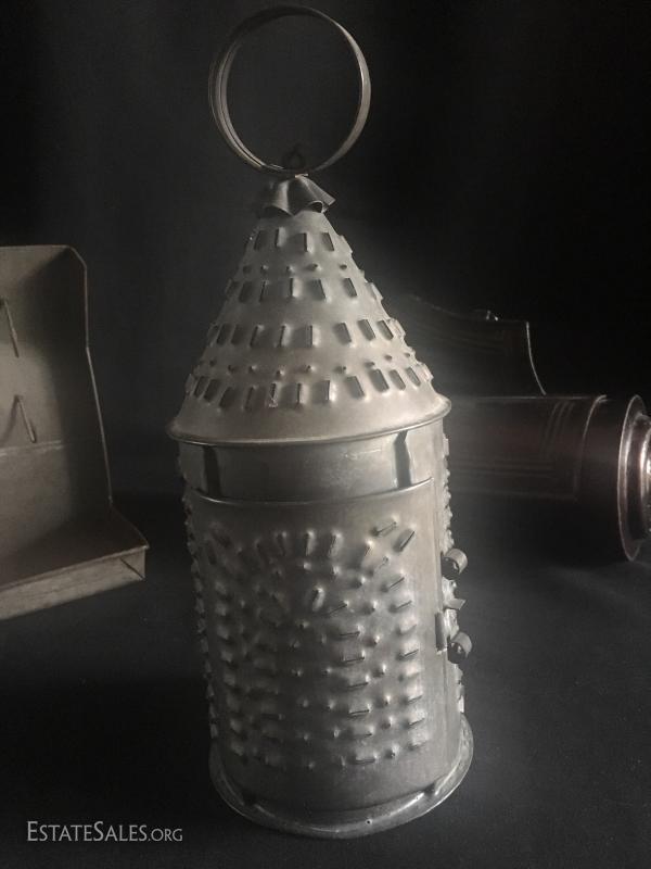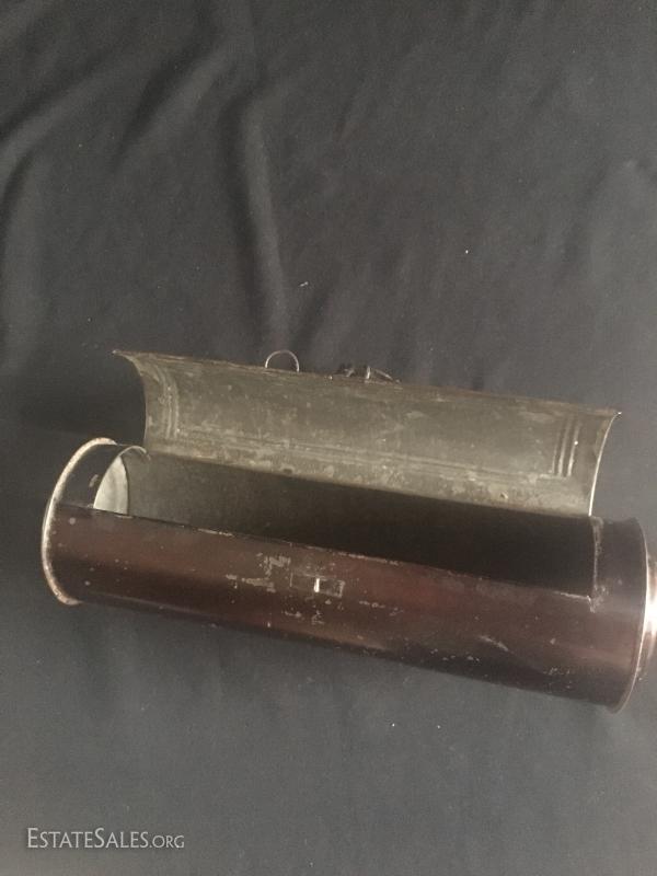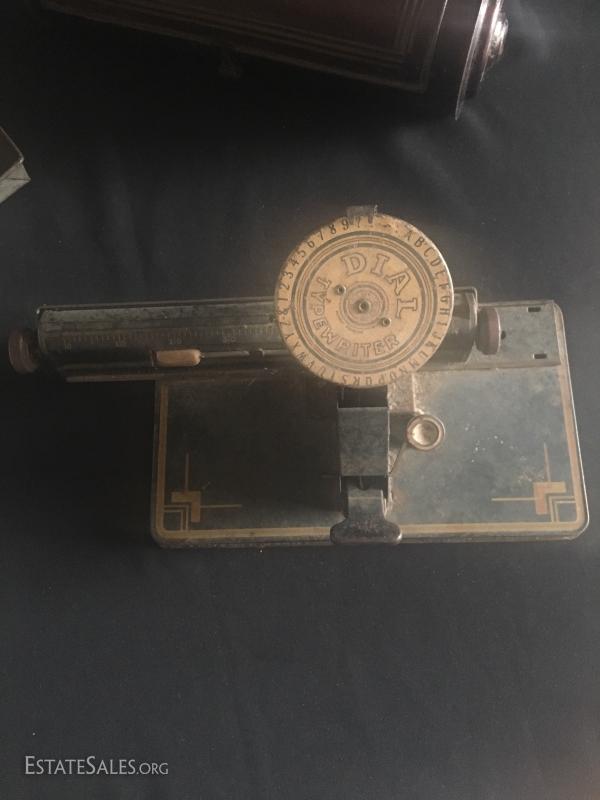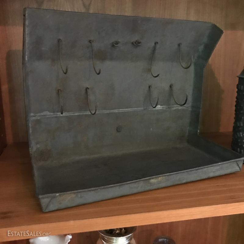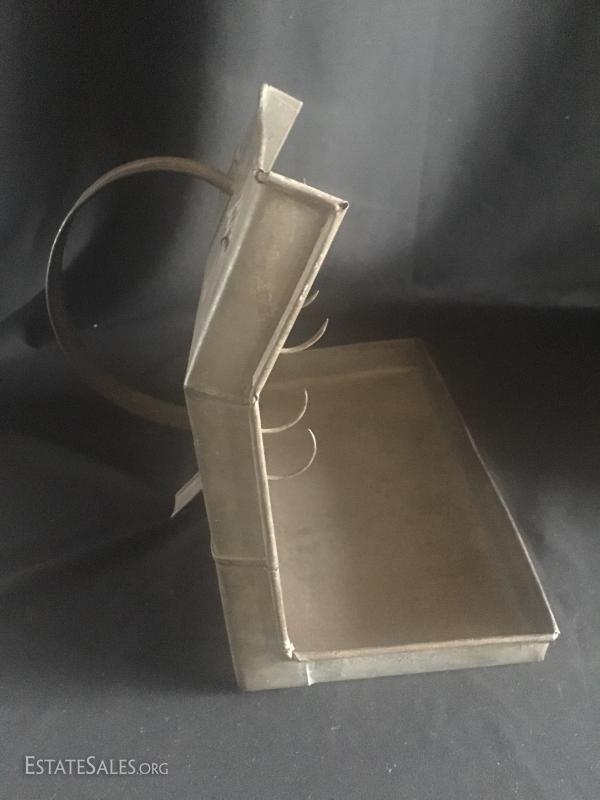 Tin candle holder, primitive bird roaster, tin/metal vintage candlebox , vintage child's typewriter.