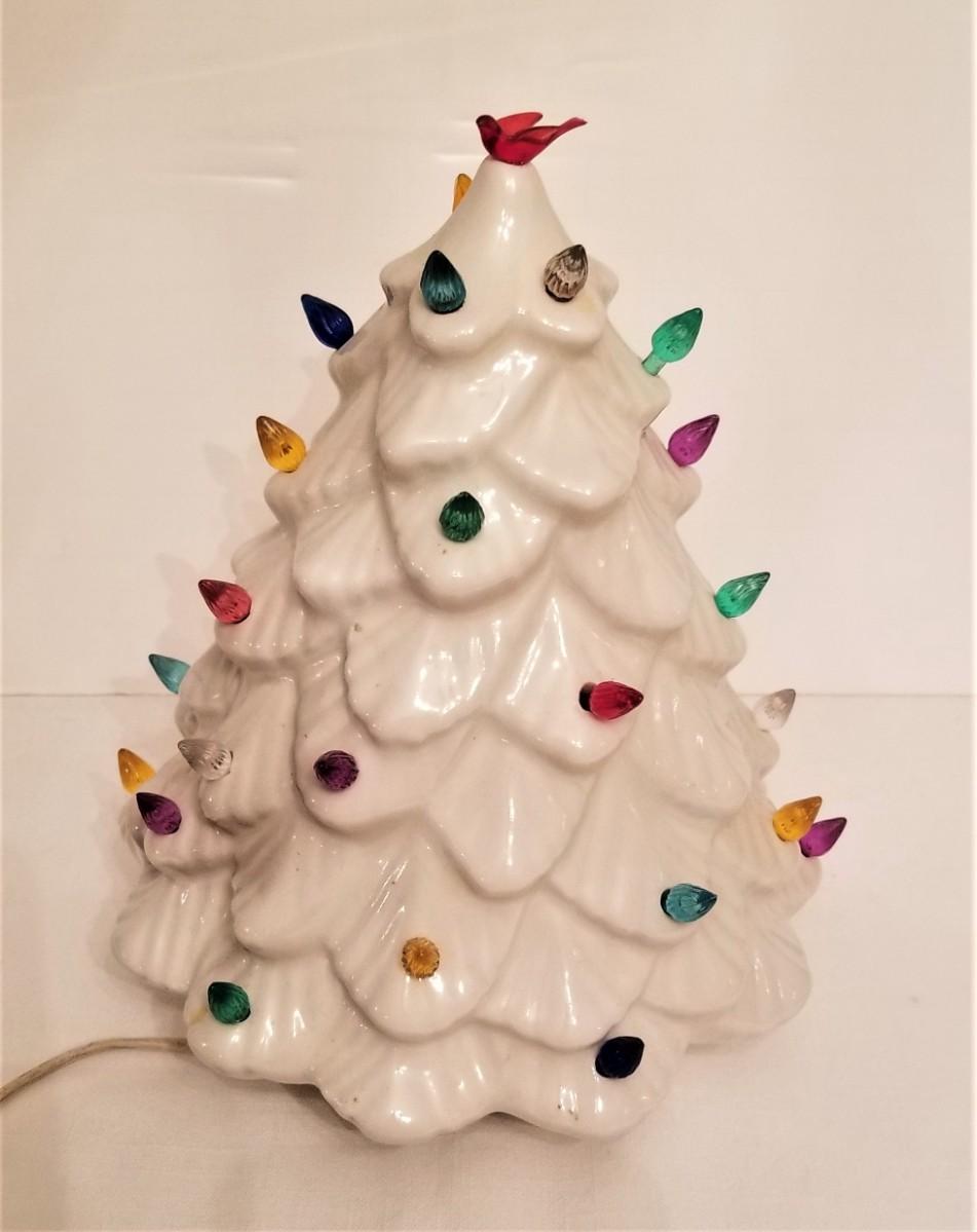 Lot #58 Vintage White Ceramic Lighted Christmas tree - complete