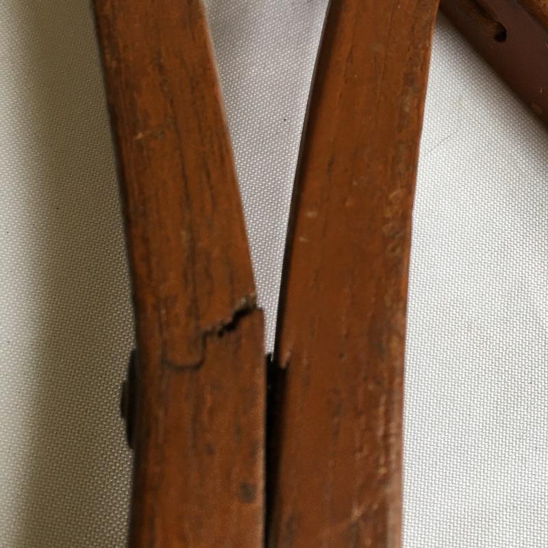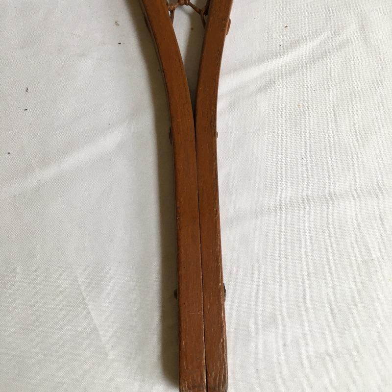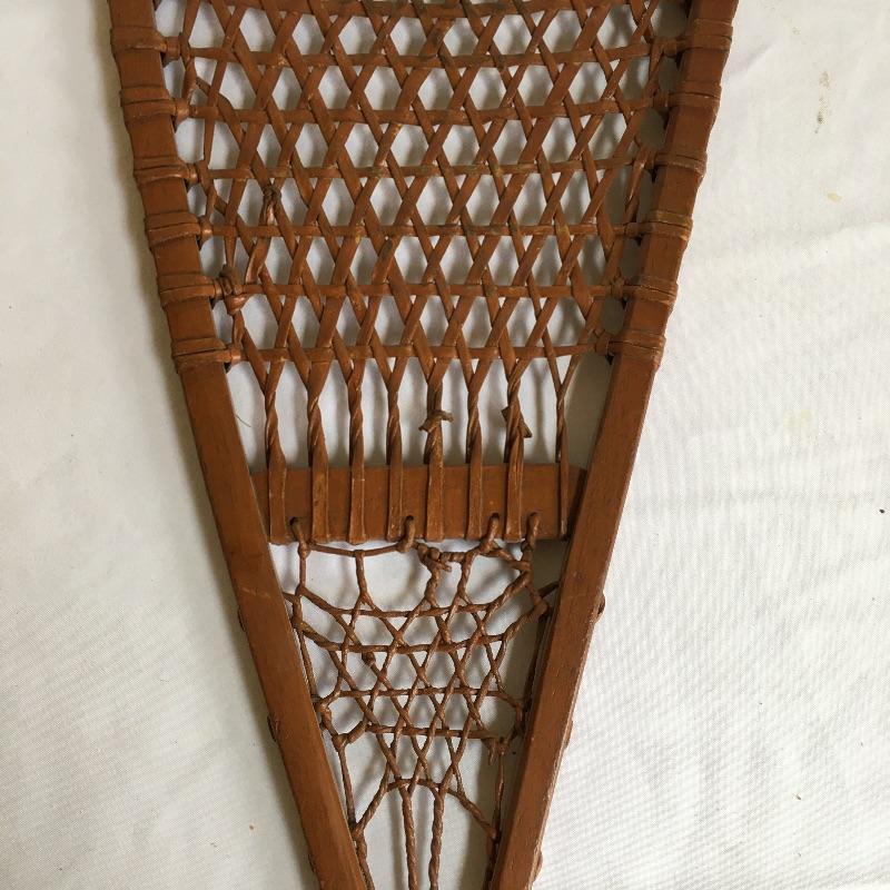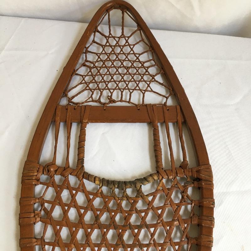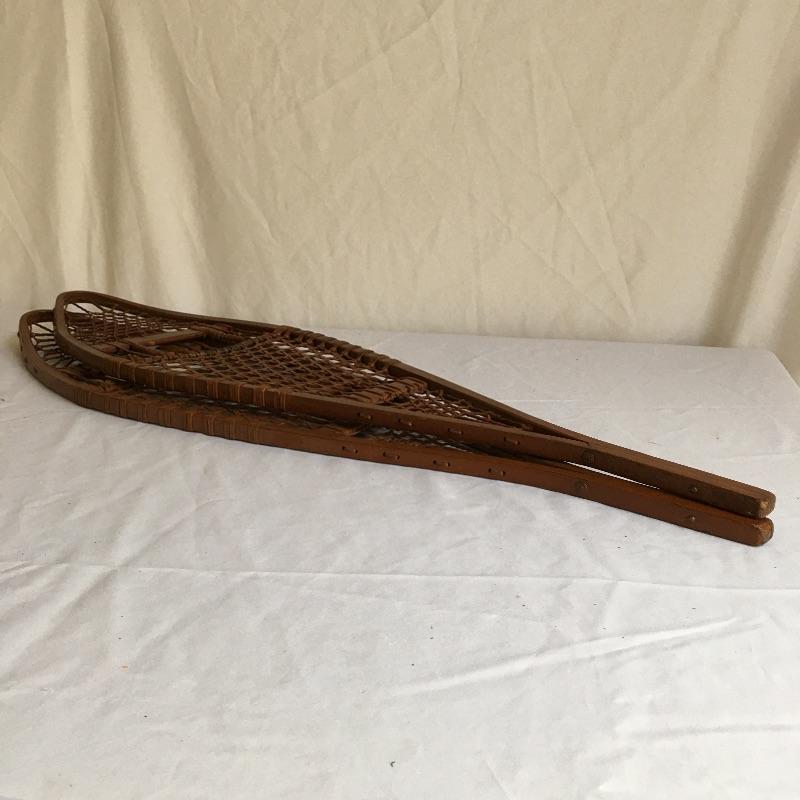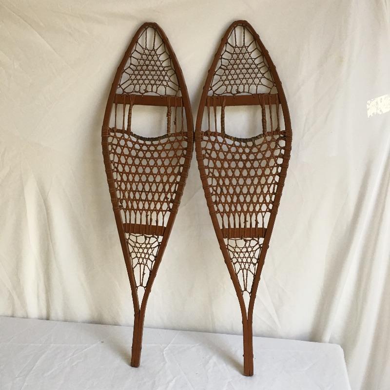 These wood snowshoes make for great decoration and a conversation starter or put them to use the next time it snows! One shoe has a crack, see pictures. Shoes measure 11.25” x 40.5”. Shoes are made from wood and what appears to be a rawhide deck.